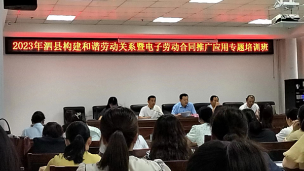 为深入贯彻落实国家及省市人社部门大力推广应用电子劳动合同的安排部署,全力做好这项惠企惠民工作,泗县人社局于7月14日举办构建和谐劳动关系暨电子劳动合同推广应用专题培训班。泗县17个镇、街道人社所负责人及60余家企业相关工作人员共80余人参加了培训。