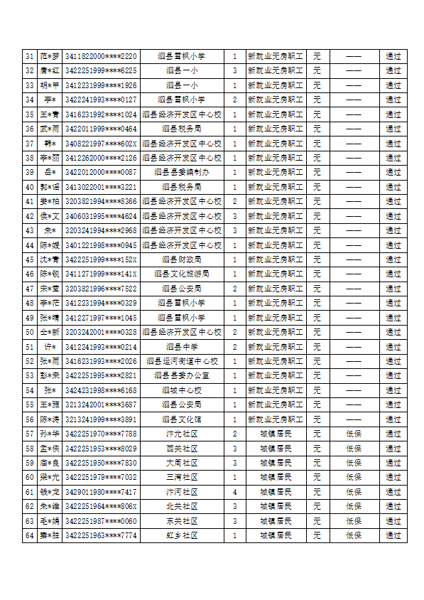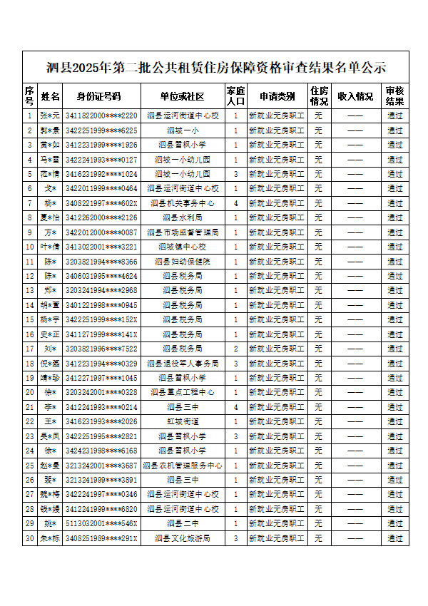 三、公示内容:泗县2025年第二批公共租赁住房保障资格审查结果名单。(名单附后)