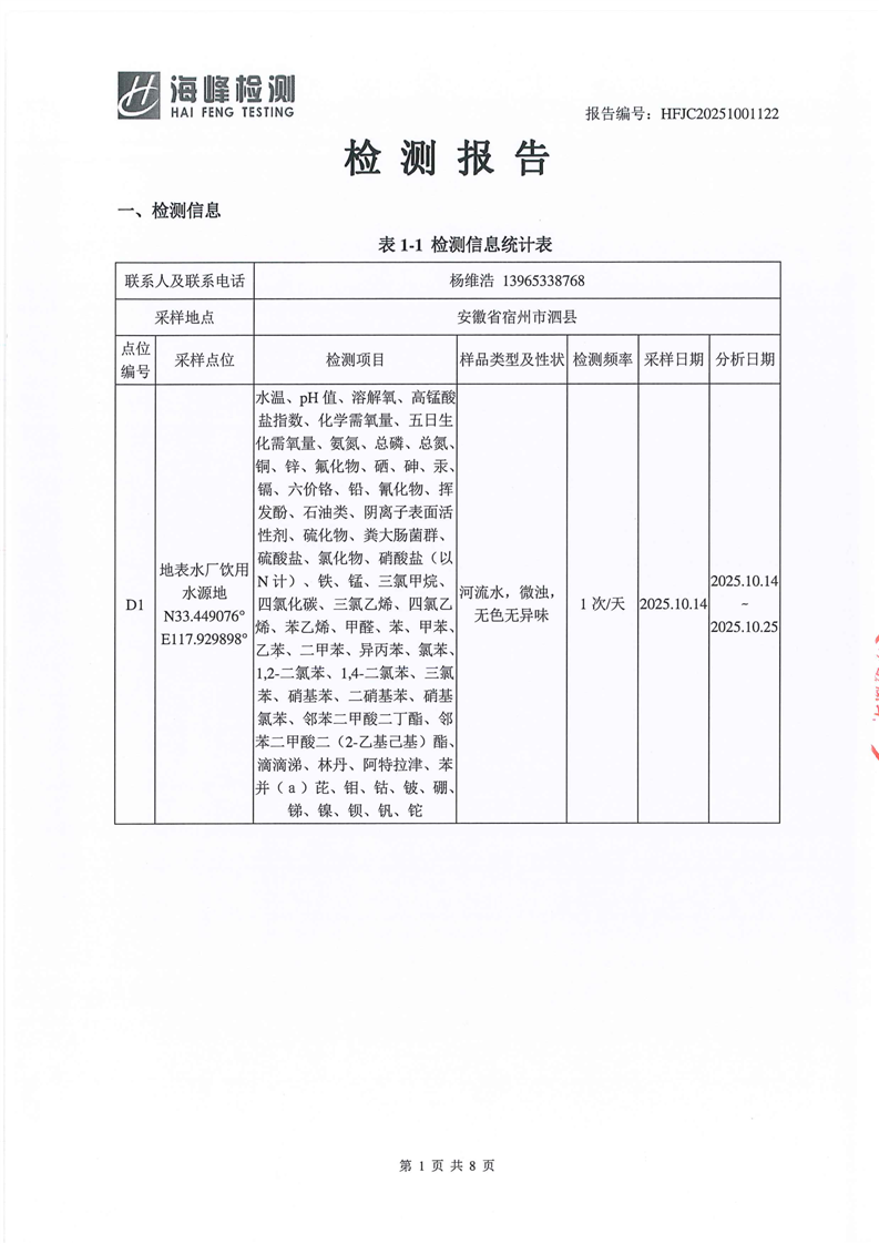 【饮用水水源水质、集中式生活饮用水水源水质】泗县2025年第四季度饮用水源地水质检测报告