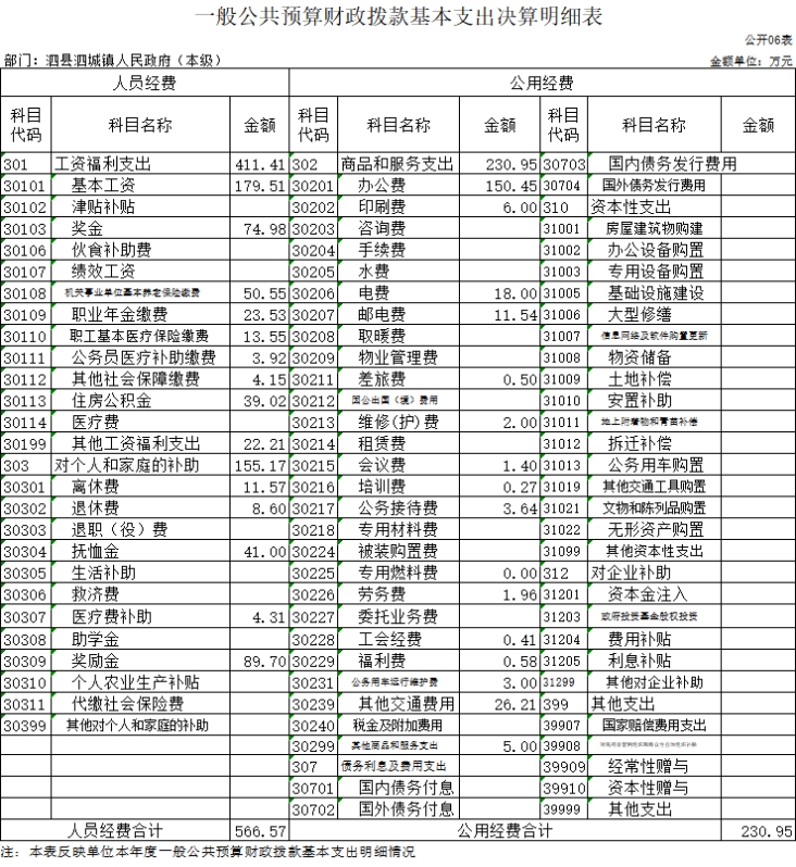 第二部分 安徽省泗县泗城镇人民政府2022年度单位决算表