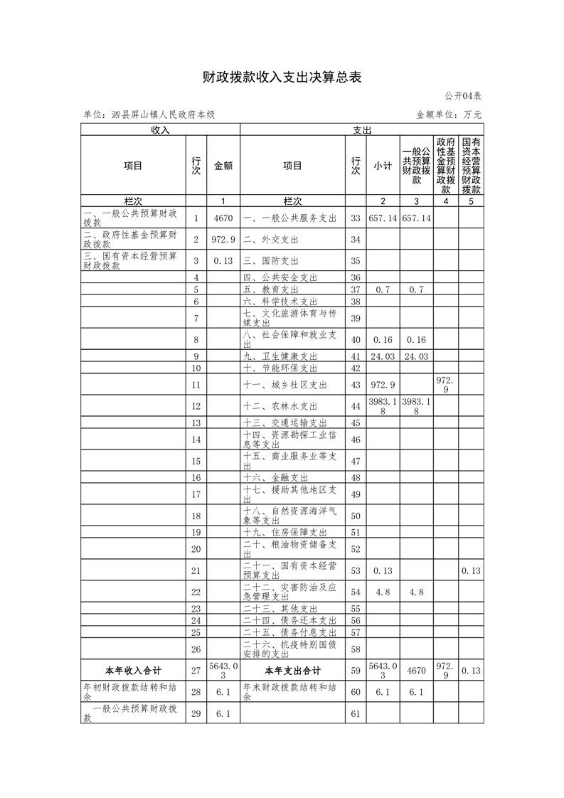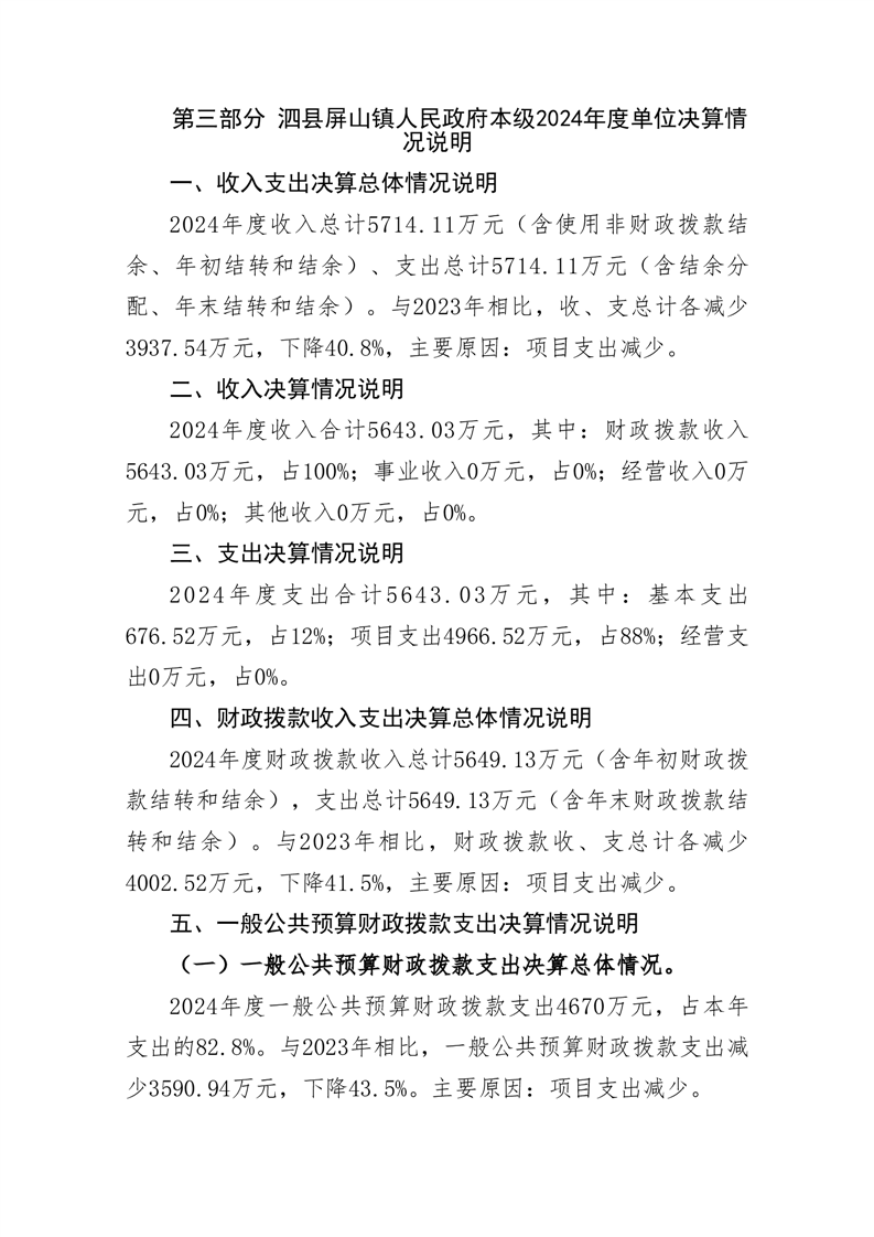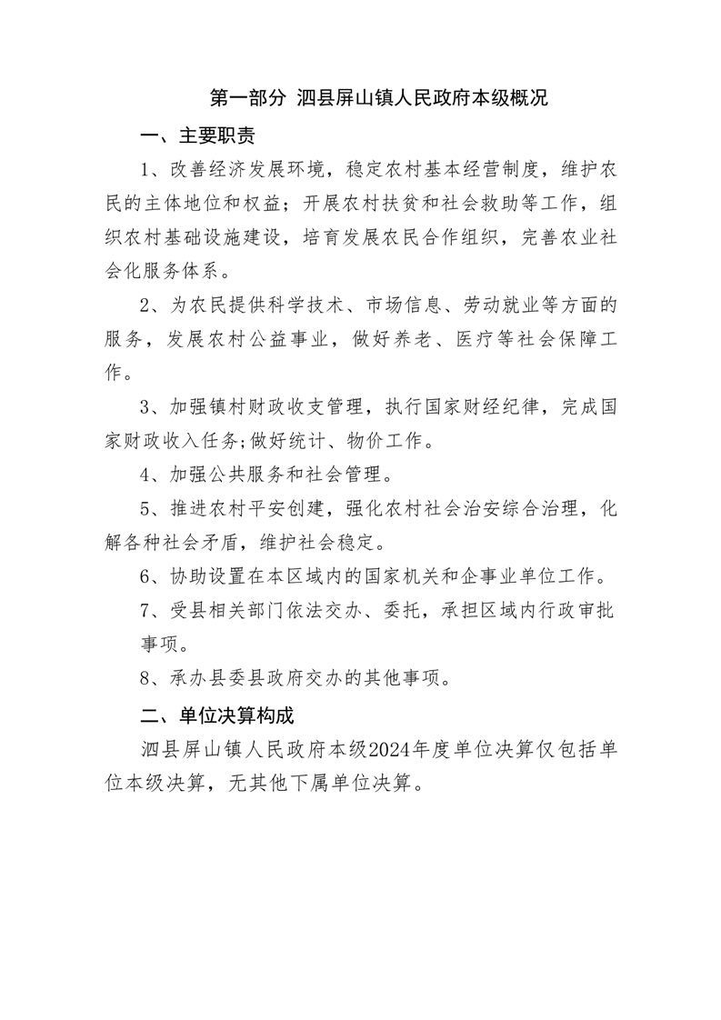 泗县屏山镇人民政府本级2024年度单位决算公开