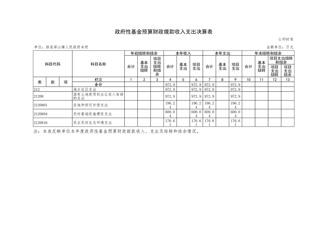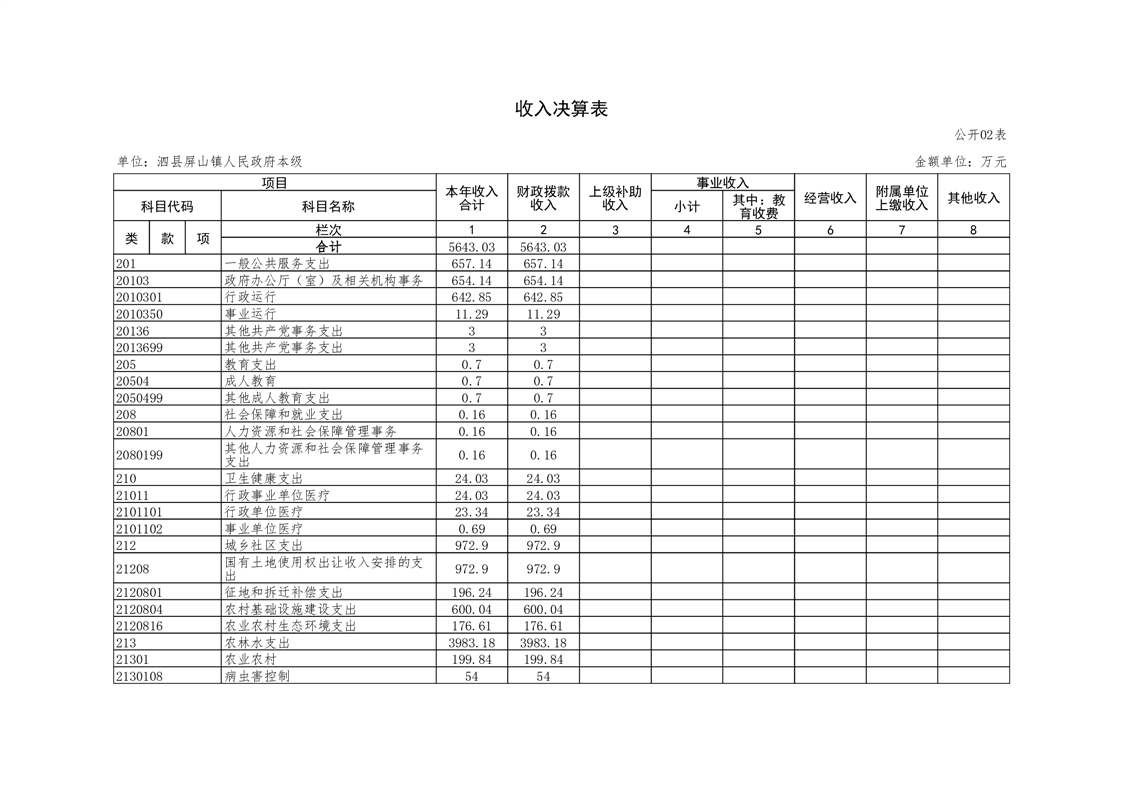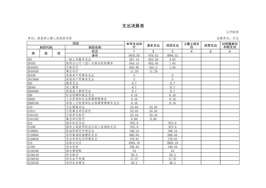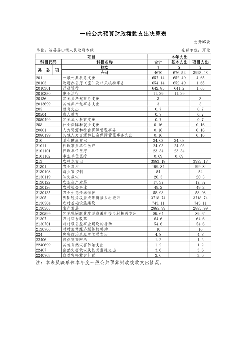 泗县屏山镇人民政府本级2024年度单位决算公开