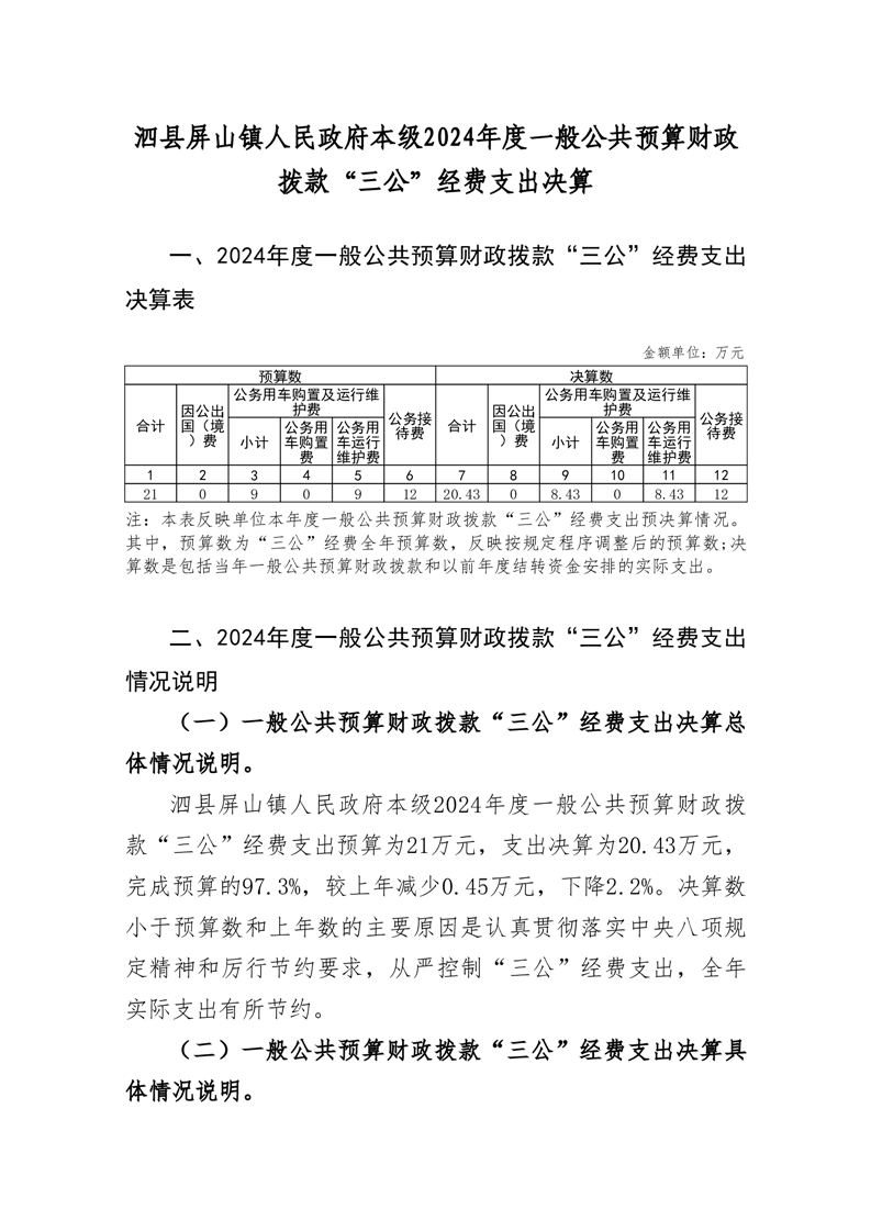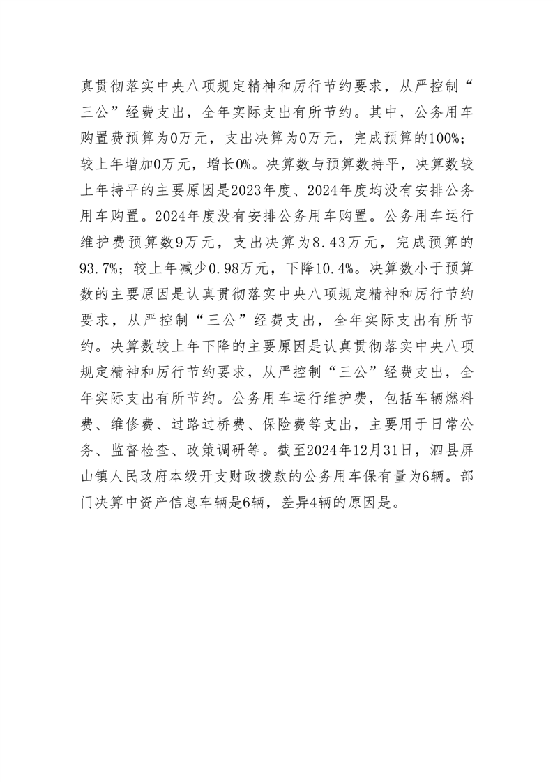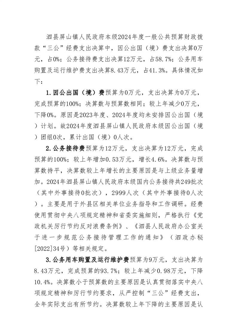 泗县屏山镇人民政府本级2024年度单位一般公共预算财政拨款“三公”经费决算情况说明