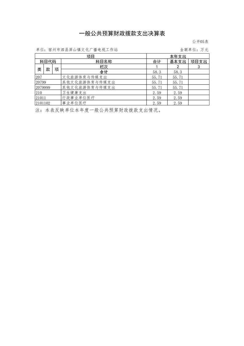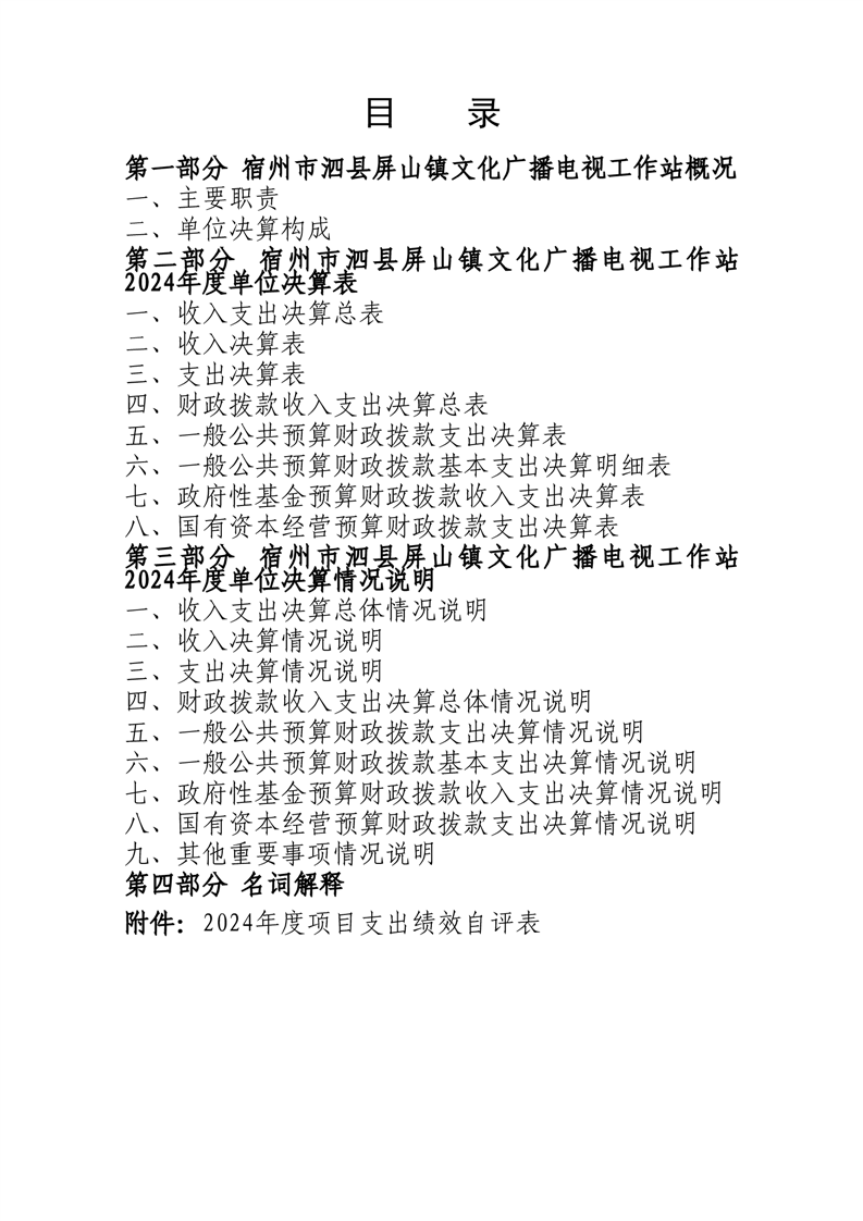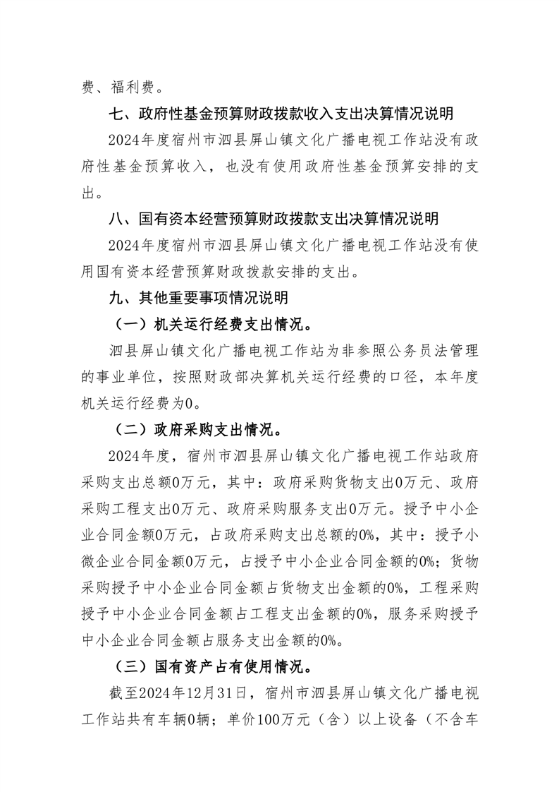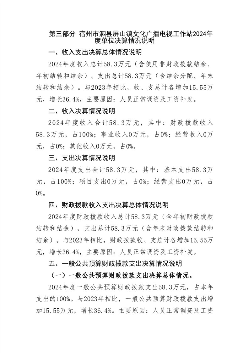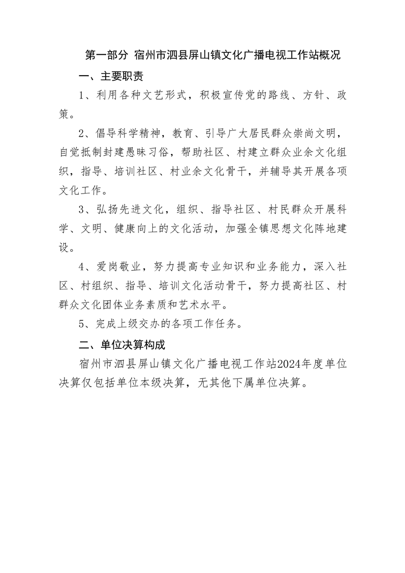 宿州市泗县屏山镇文化广播电视工作站2024年度单位决算公开