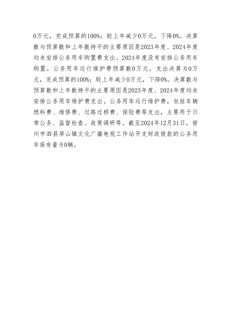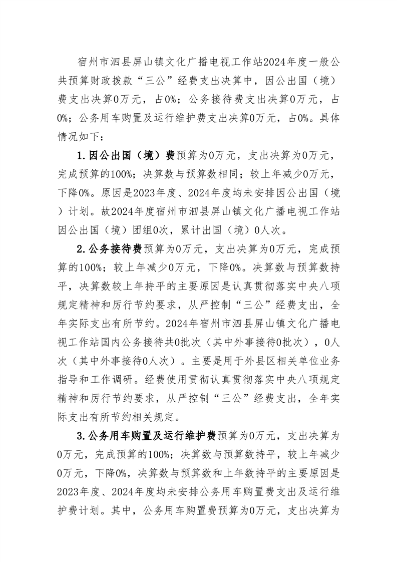 宿州市泗县屏山镇文化广播电视工作站2024年度单位一般公共预算财政拨款“三公”经费决算情况说明