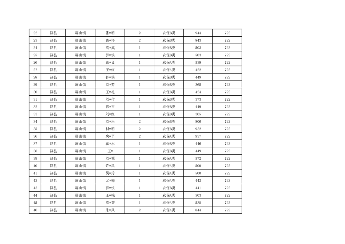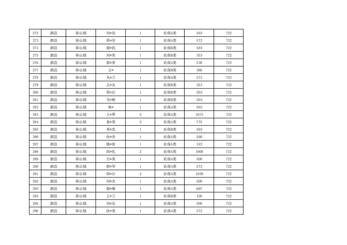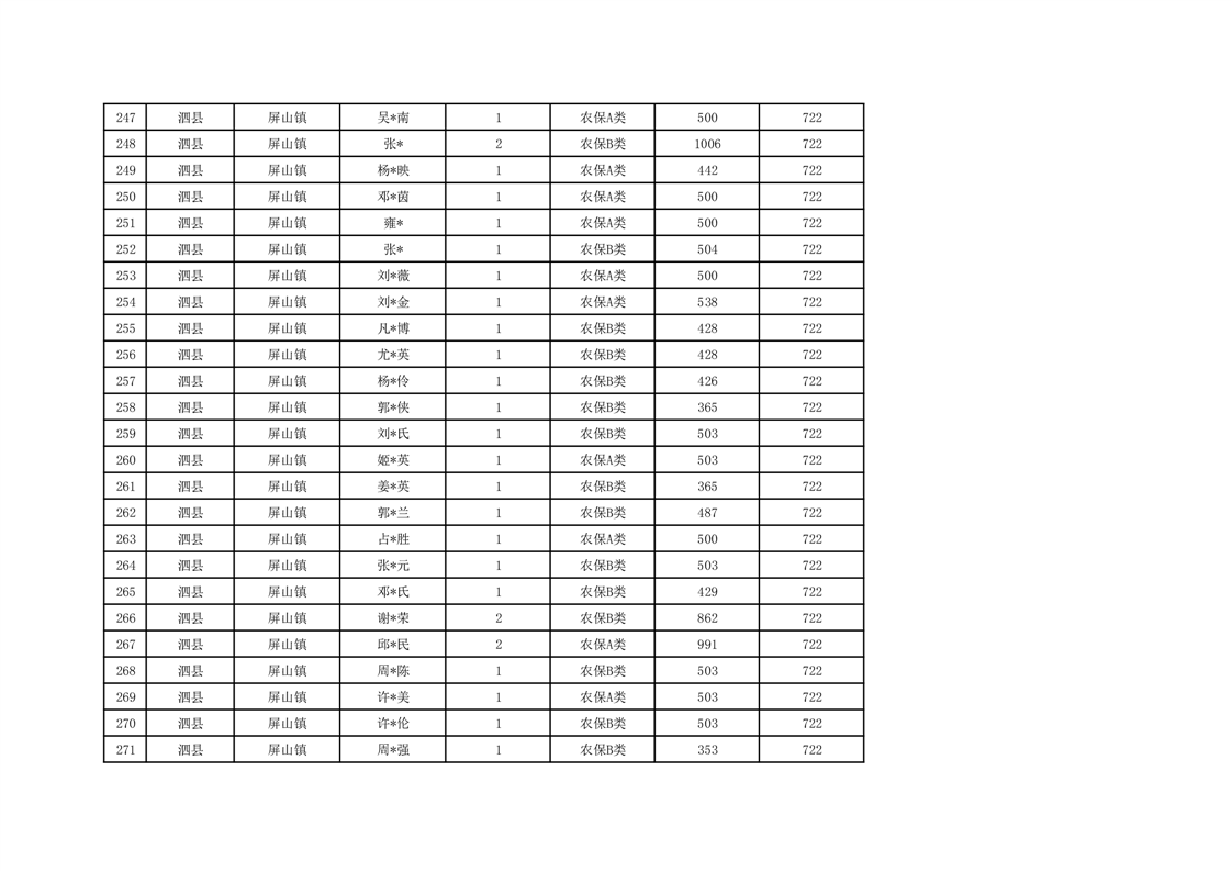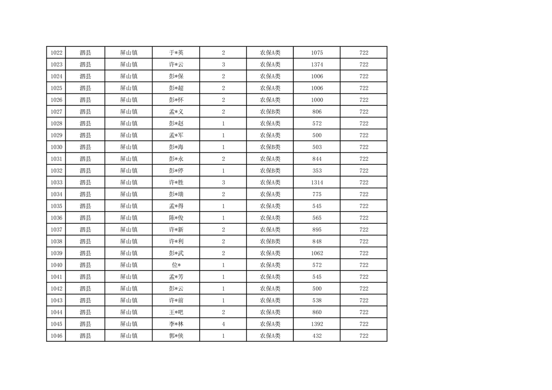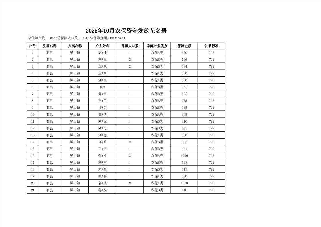 【分配结果】屏山镇2025年10月农保资金发放花名册