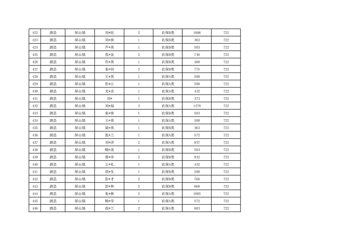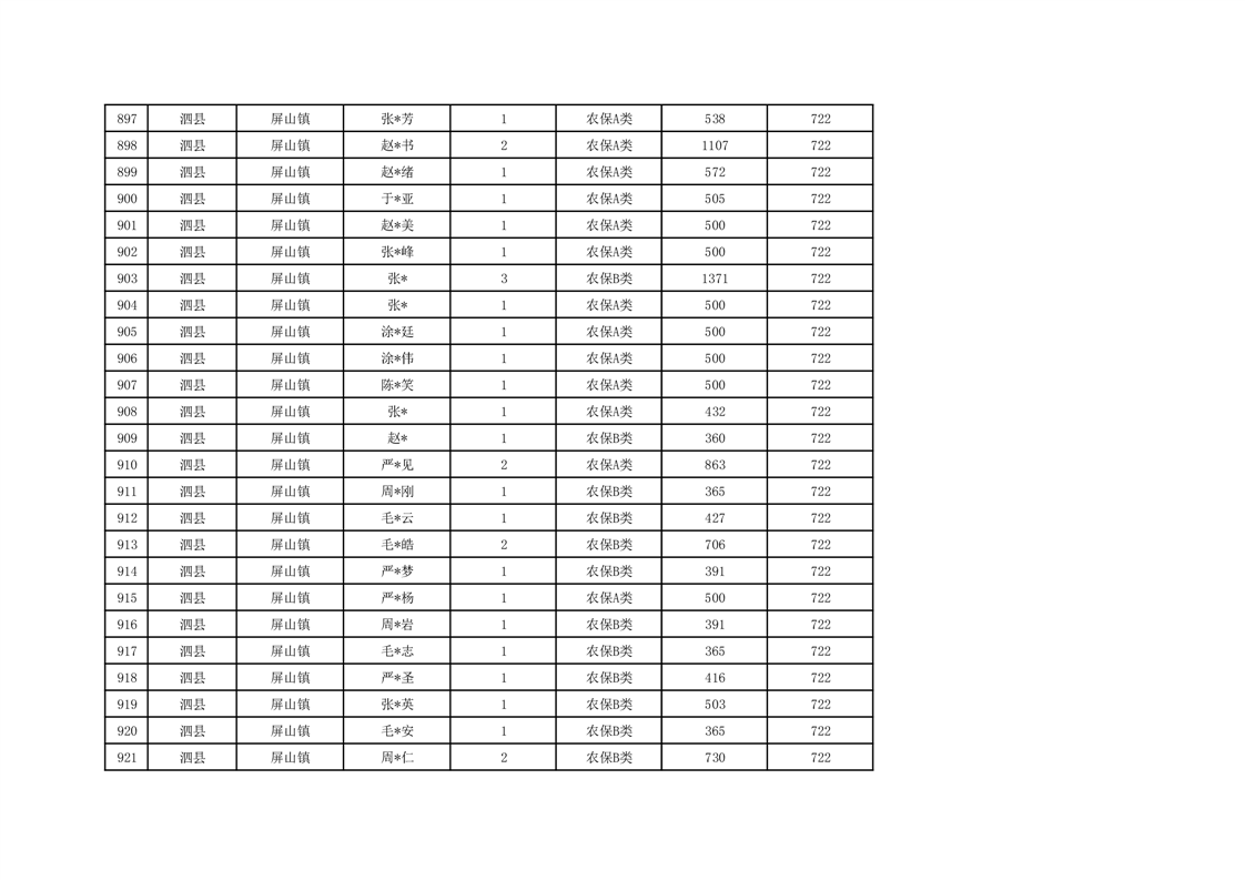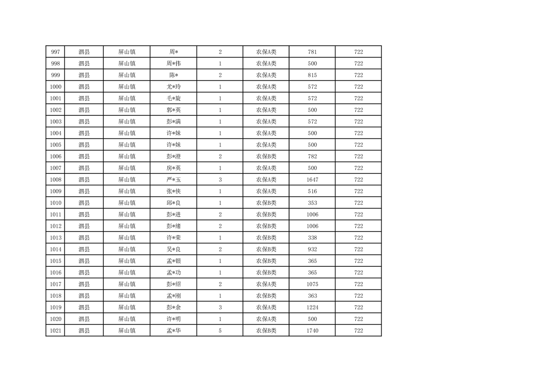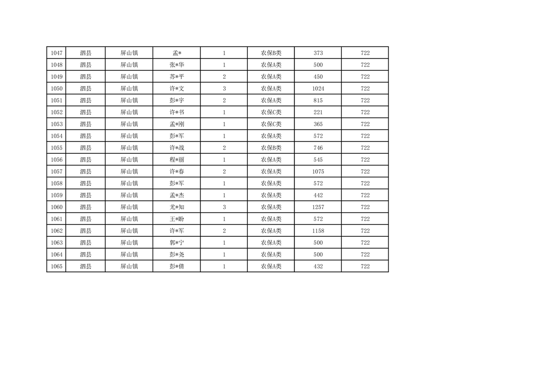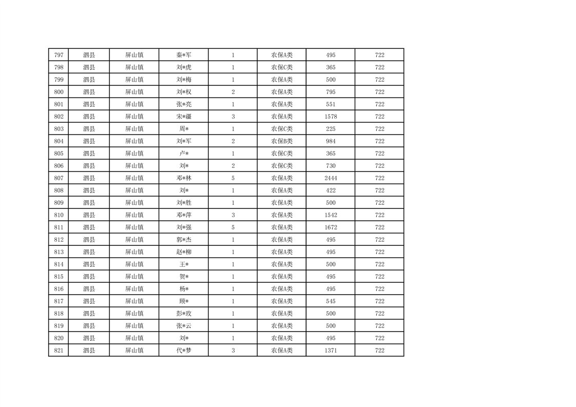 【分配结果】屏山镇2025年10月农保资金发放花名册