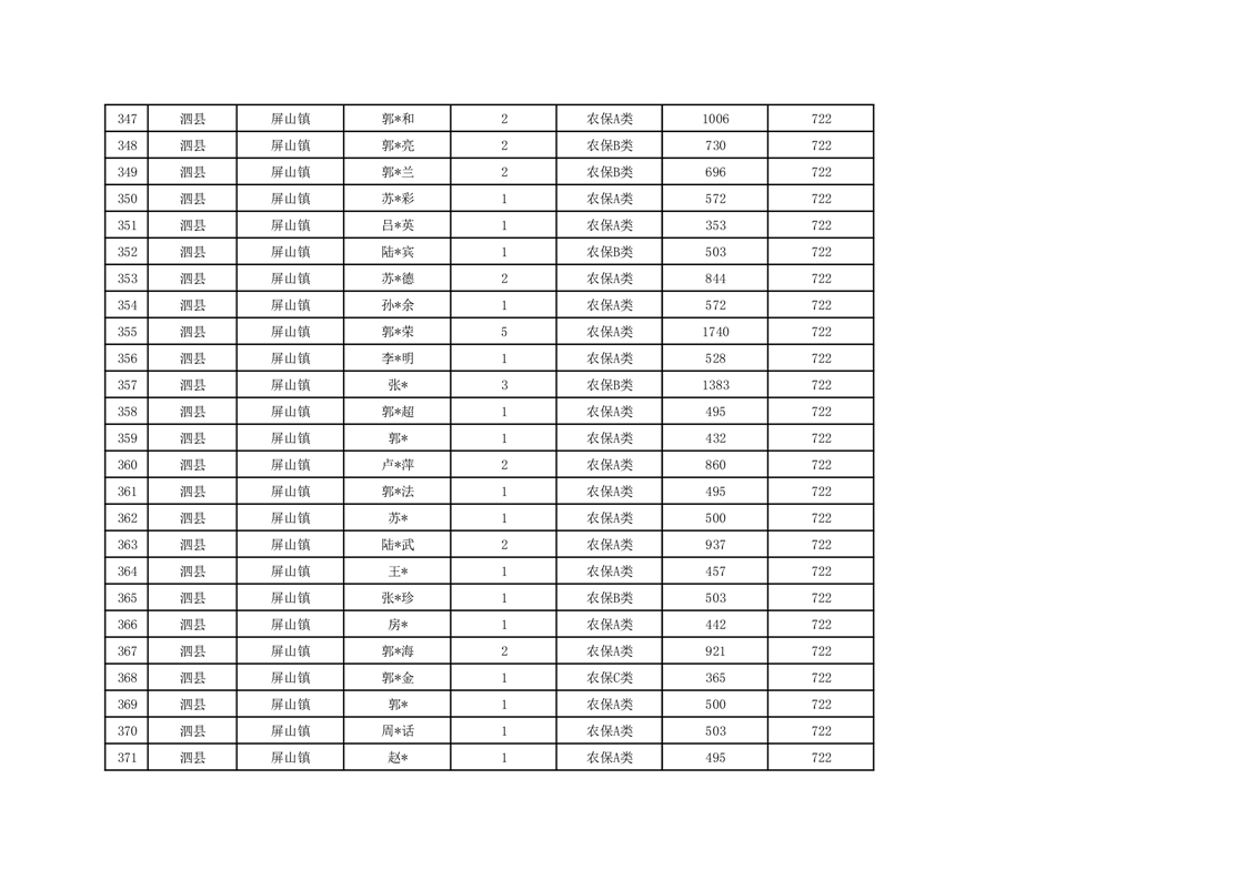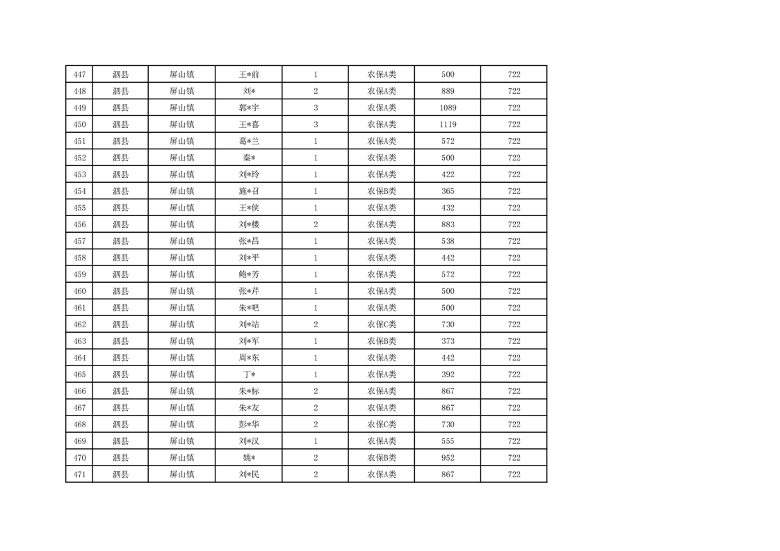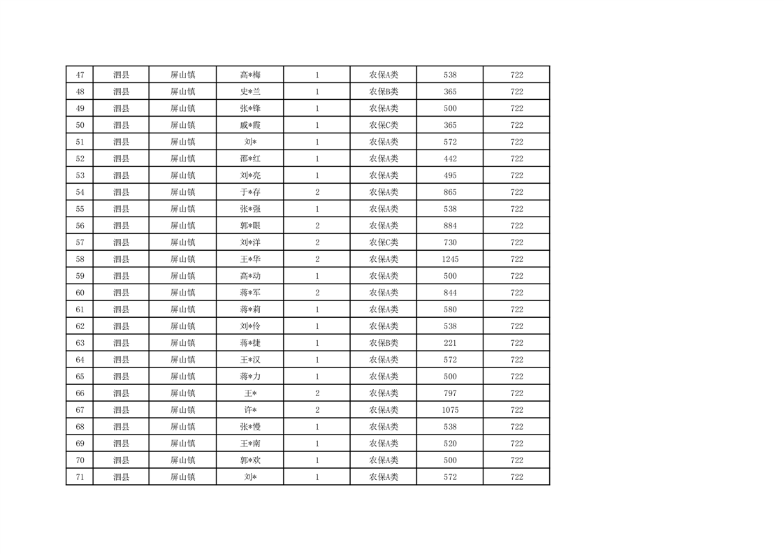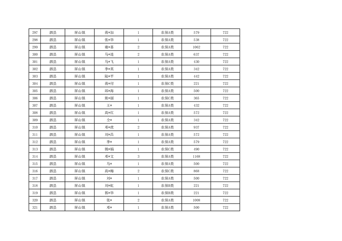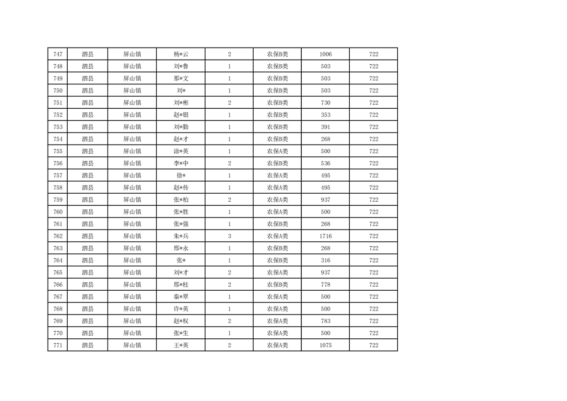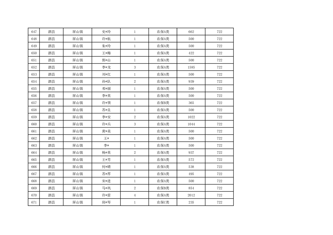 【分配结果】屏山镇2025年10月农保资金发放花名册
