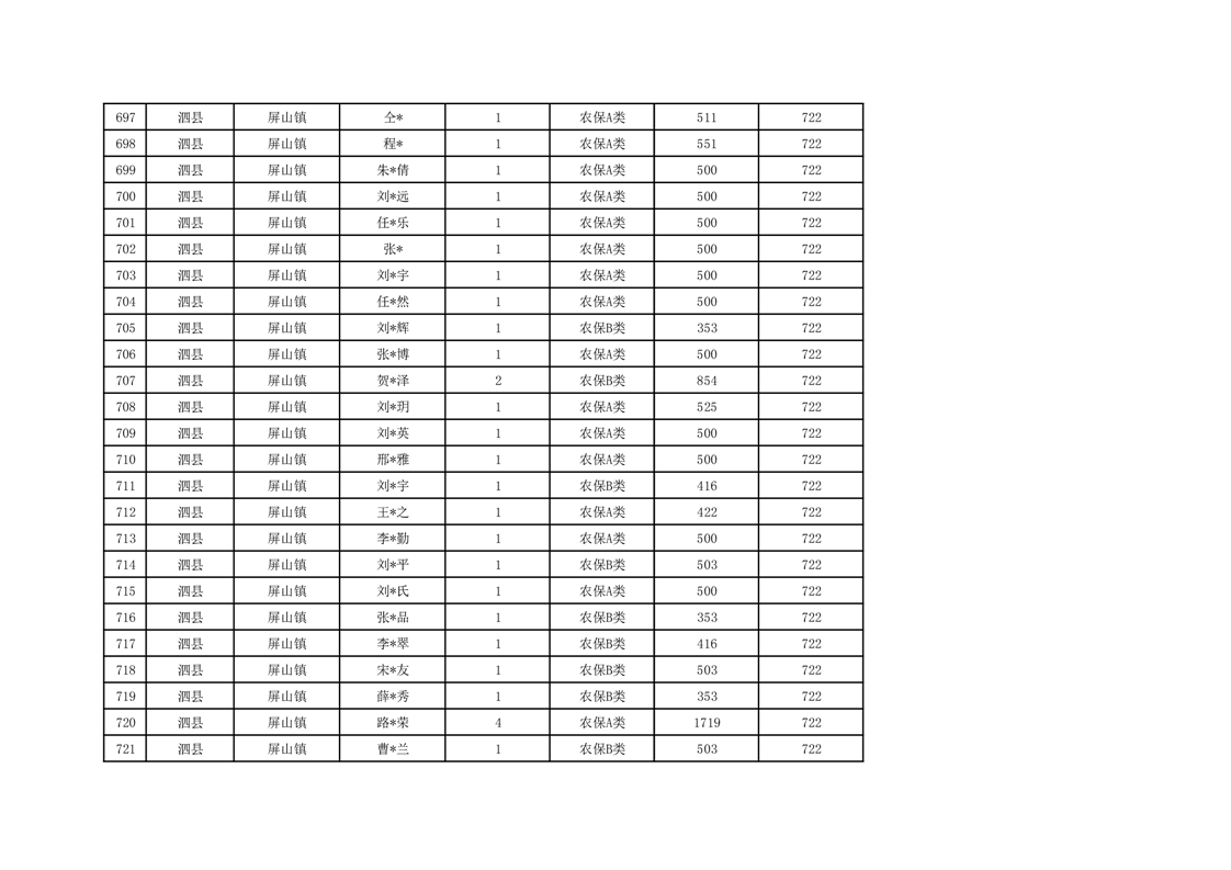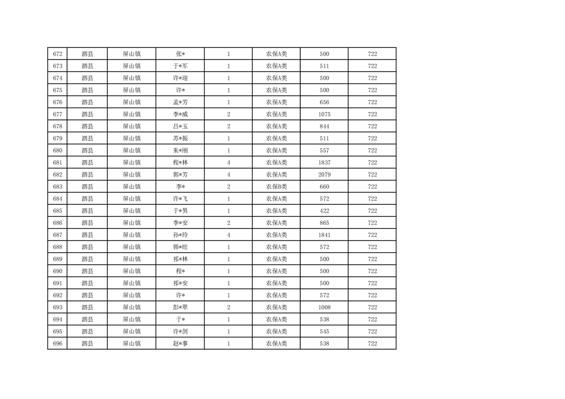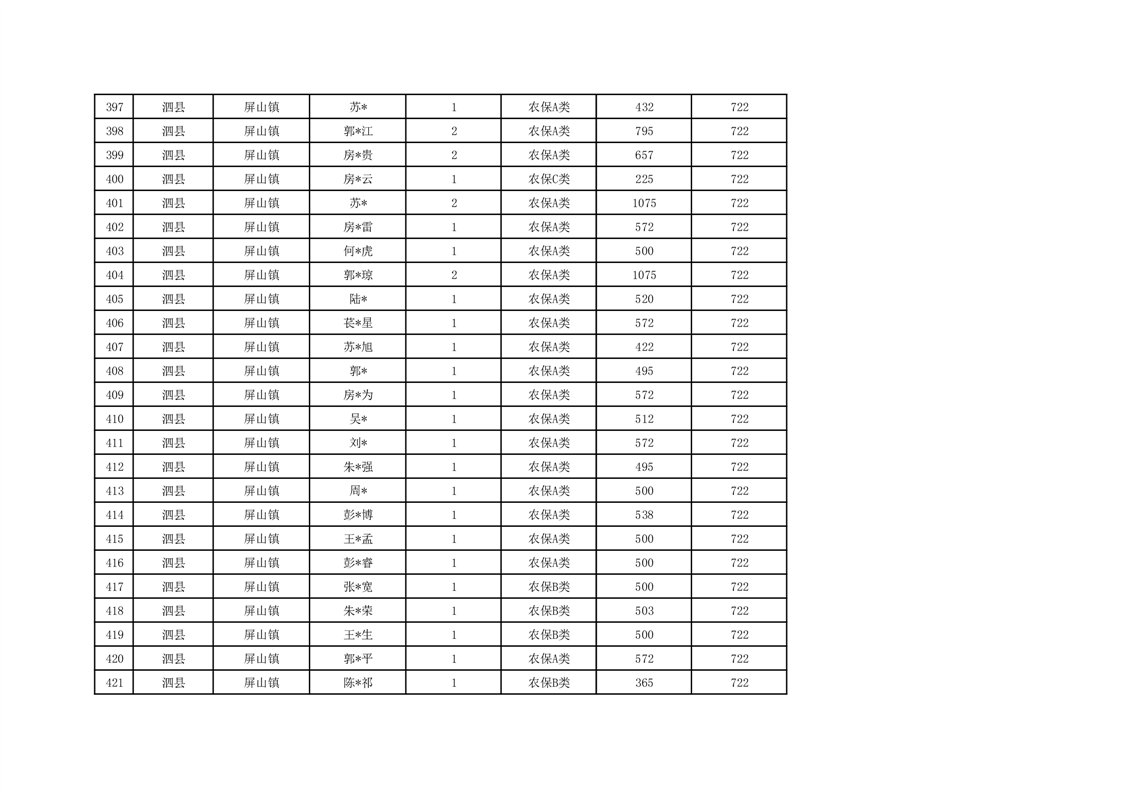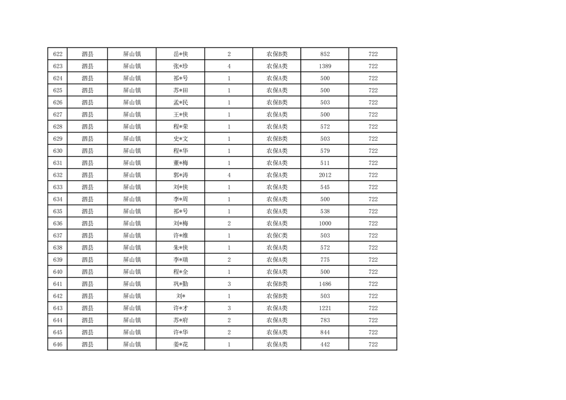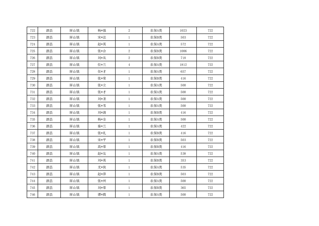 【分配结果】屏山镇2025年10月农保资金发放花名册
