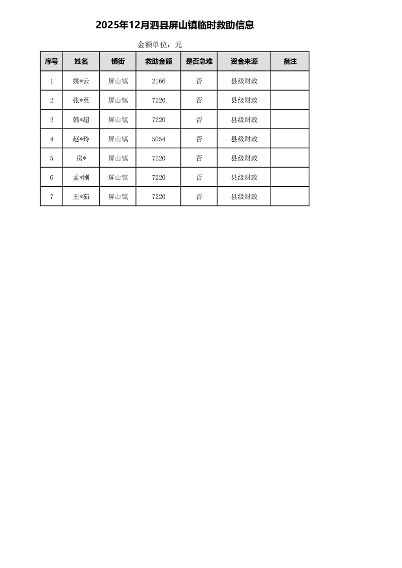 【分配结果】屏山镇2025年12月临时救助人员名单