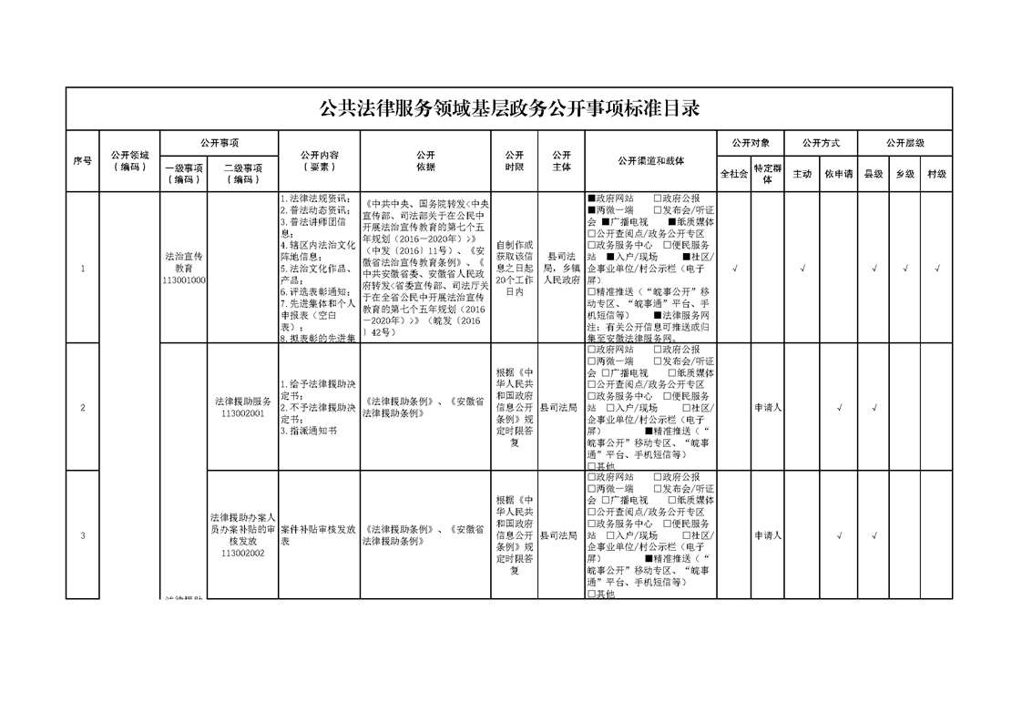公共法律服务领域基层政务公开事项标准目录