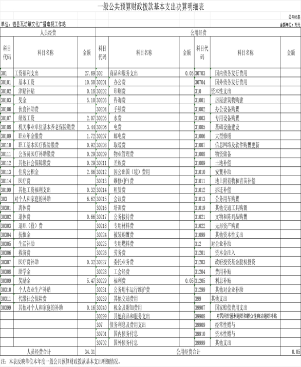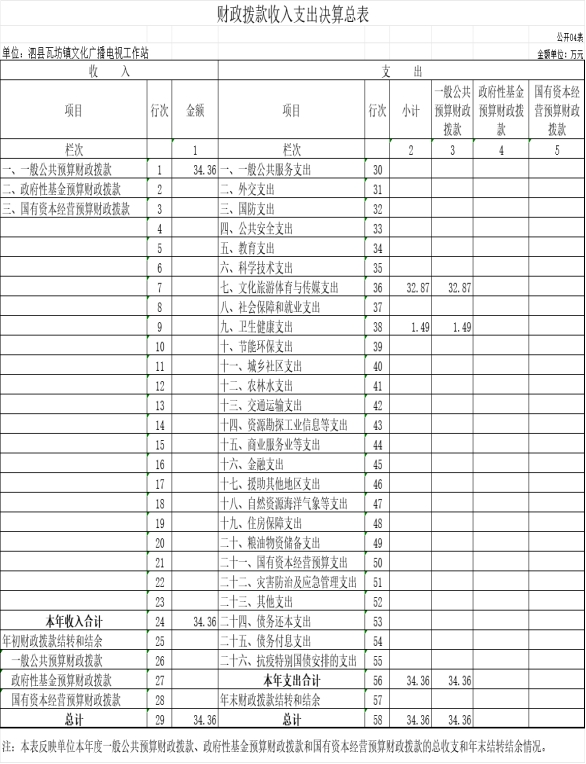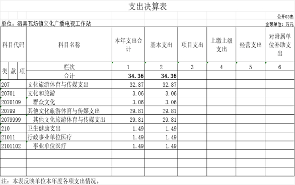 第二部分 泗县瓦坊镇文化广播电视工作站2022年度单位决算表