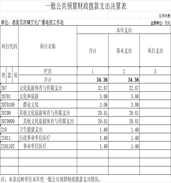 泗县瓦坊镇文化广播电视工作站2022年度单位决算