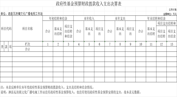 2022年度泗县瓦坊镇文化广播电视工作站没有政府性基金预算收入,也没有使用政府性基金预算安排的支出。
