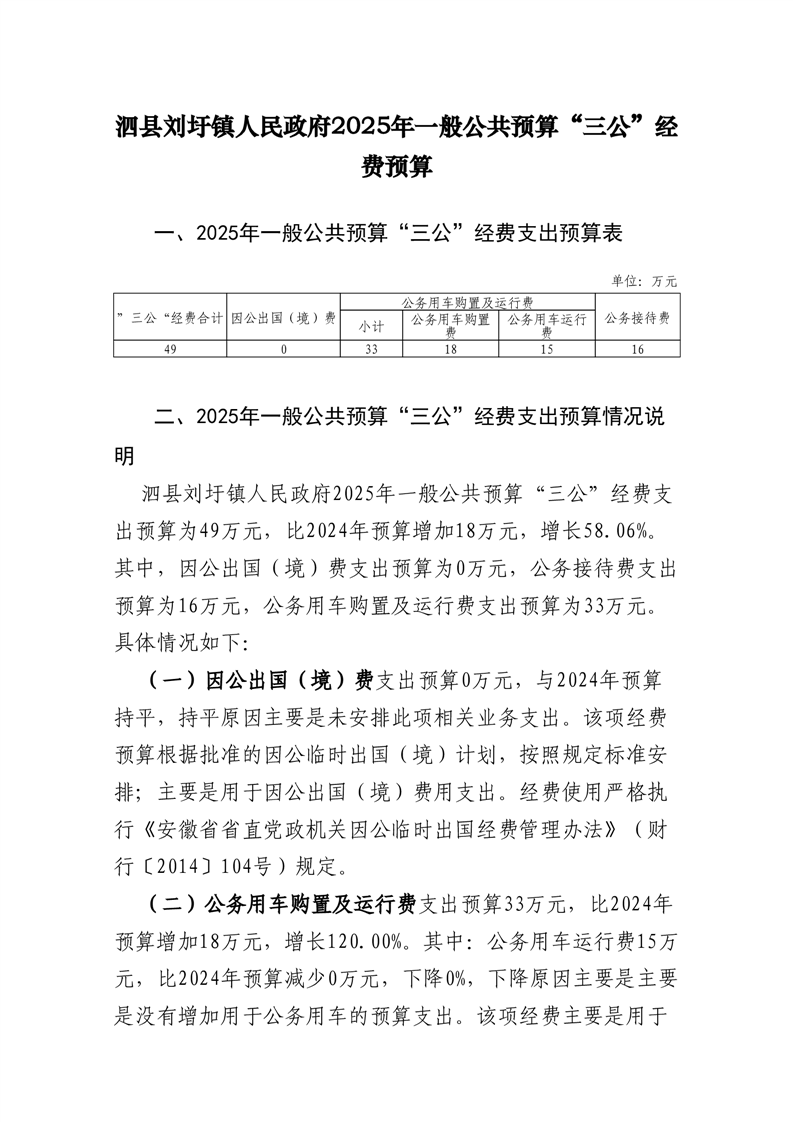 泗县刘圩镇人民政府2025年度部门一般公共预算财政拨款“三公”经费预算情况说明