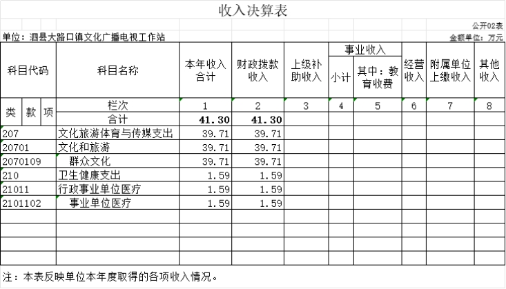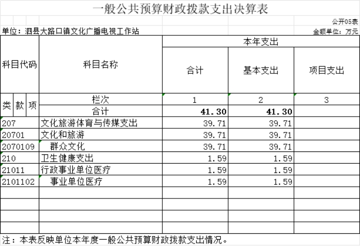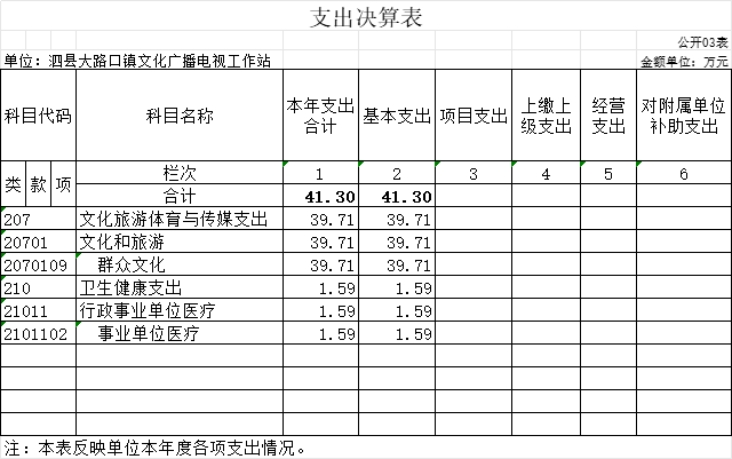泗县大路口镇文化广播电视工作站2022年度单位决算仅包括单位本级决算,无其他下属单位决算。