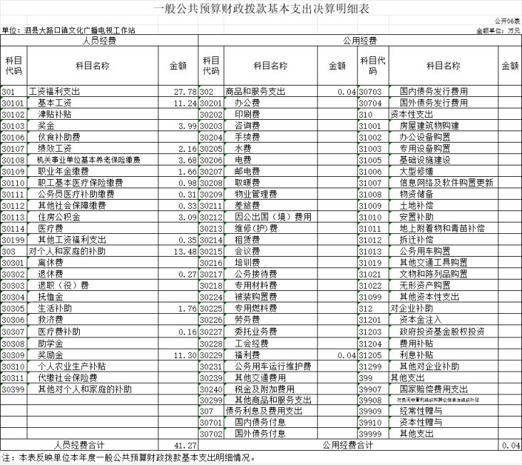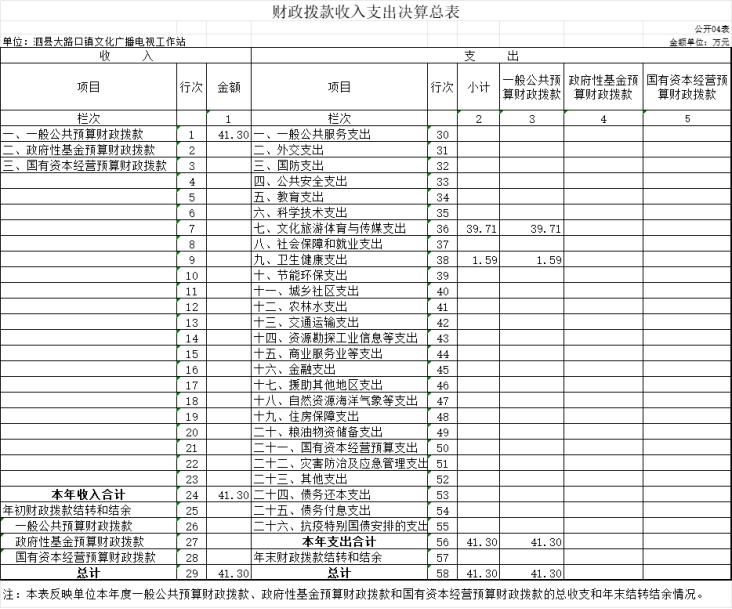 第二部分 泗县大路口镇文化广播电视工作站2022年度单位决算表
