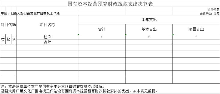 2022年度泗县大路口镇文化广播电视工作站没有国有资本经营预算财政拨款收入,也没有使用国有资本经营预算财政拨款安排的支出。