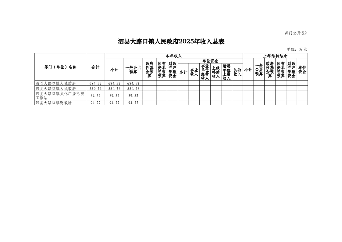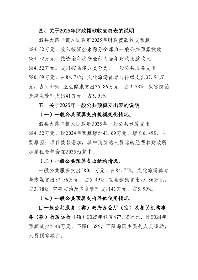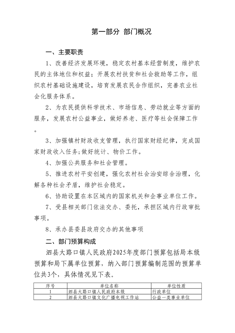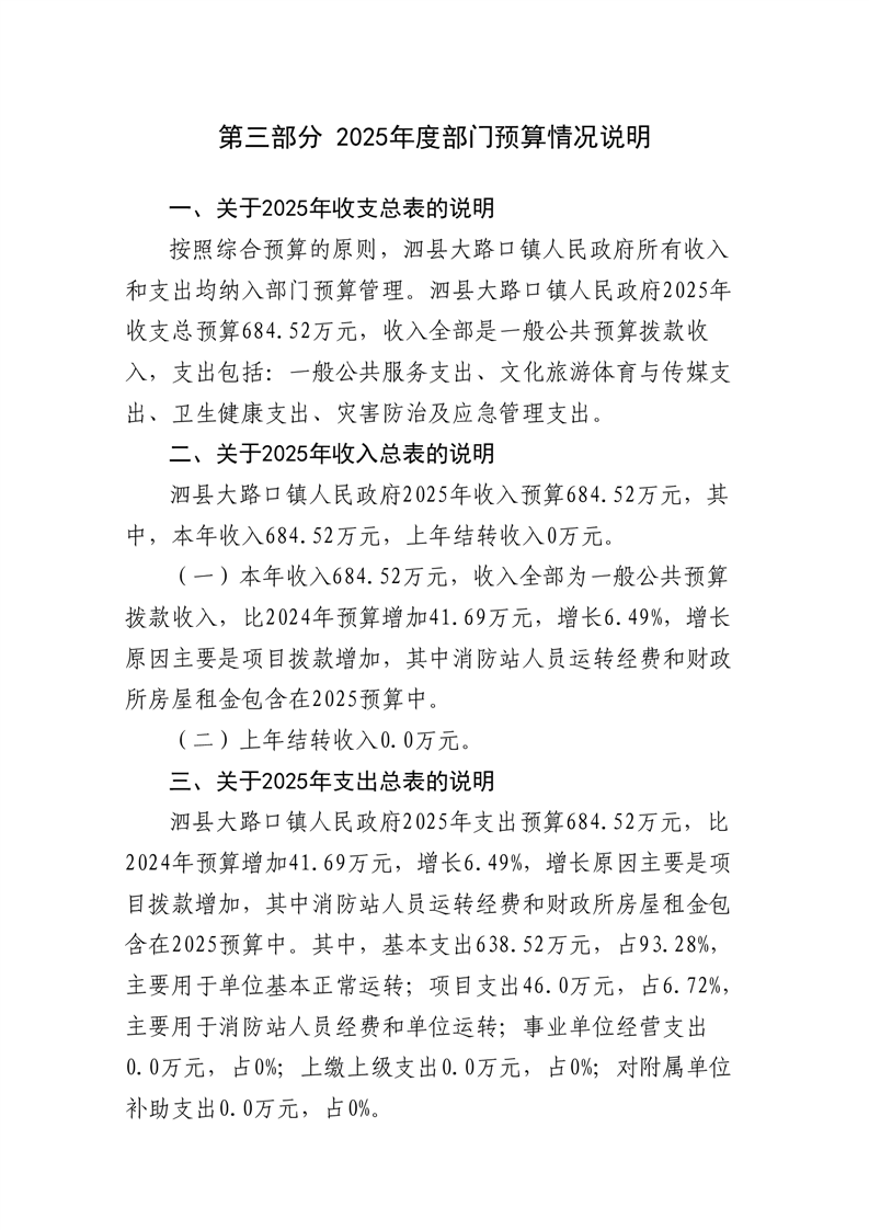 泗县大路口镇人民政府2025年度部门预算