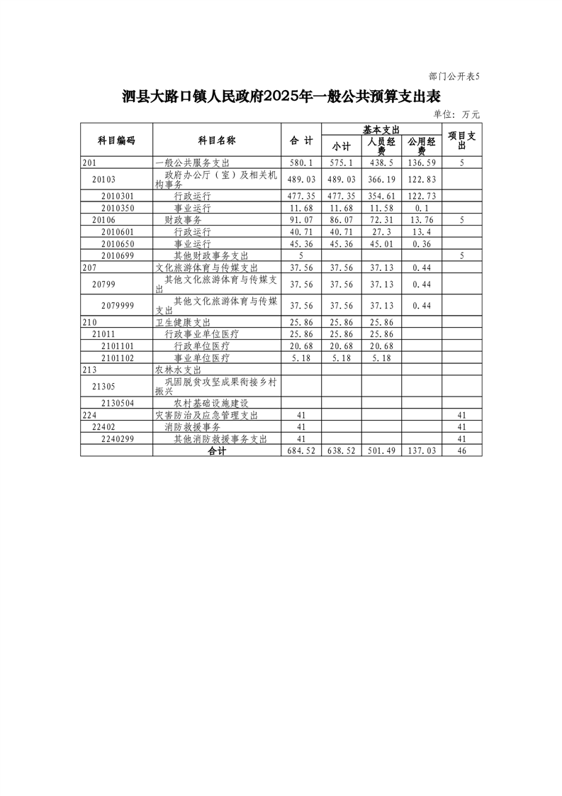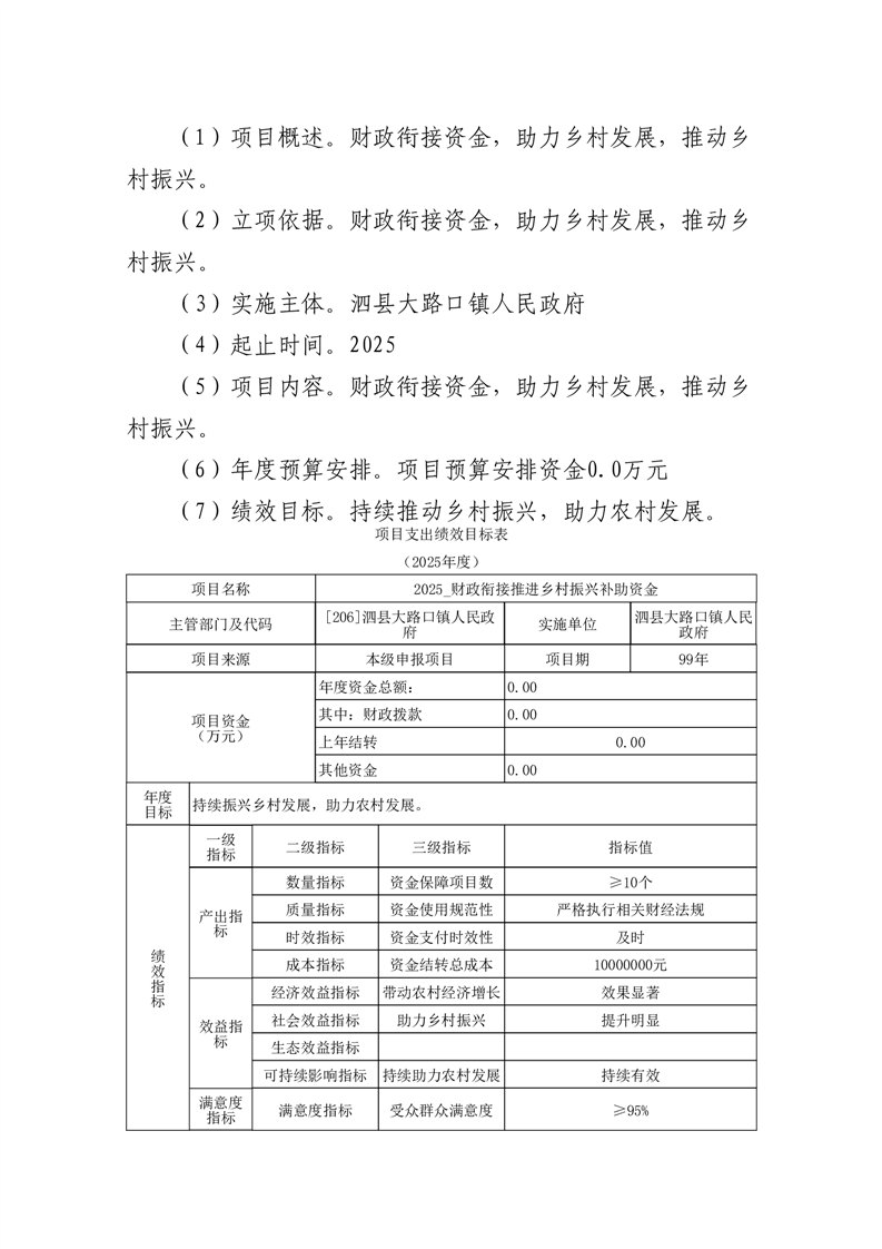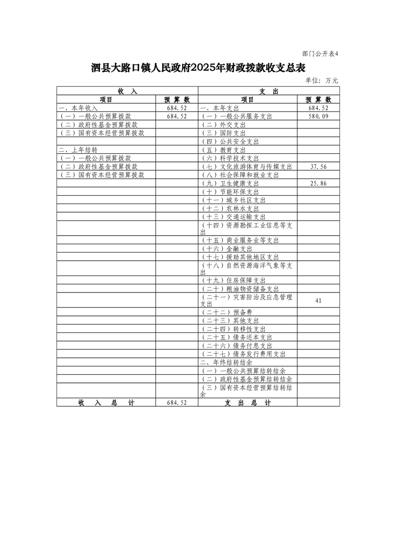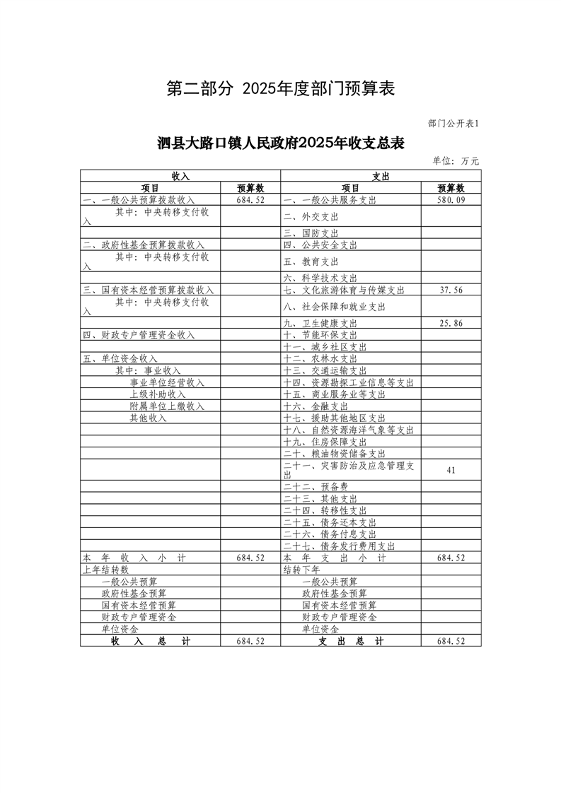 泗县大路口镇人民政府2025年度部门预算