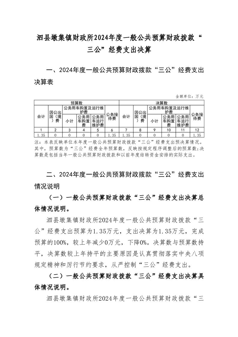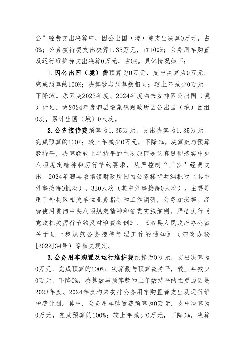 泗县墩集镇财政所2024年度单位一般公共预算财政拨款“三公”经费决算情况说明