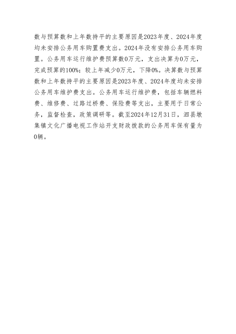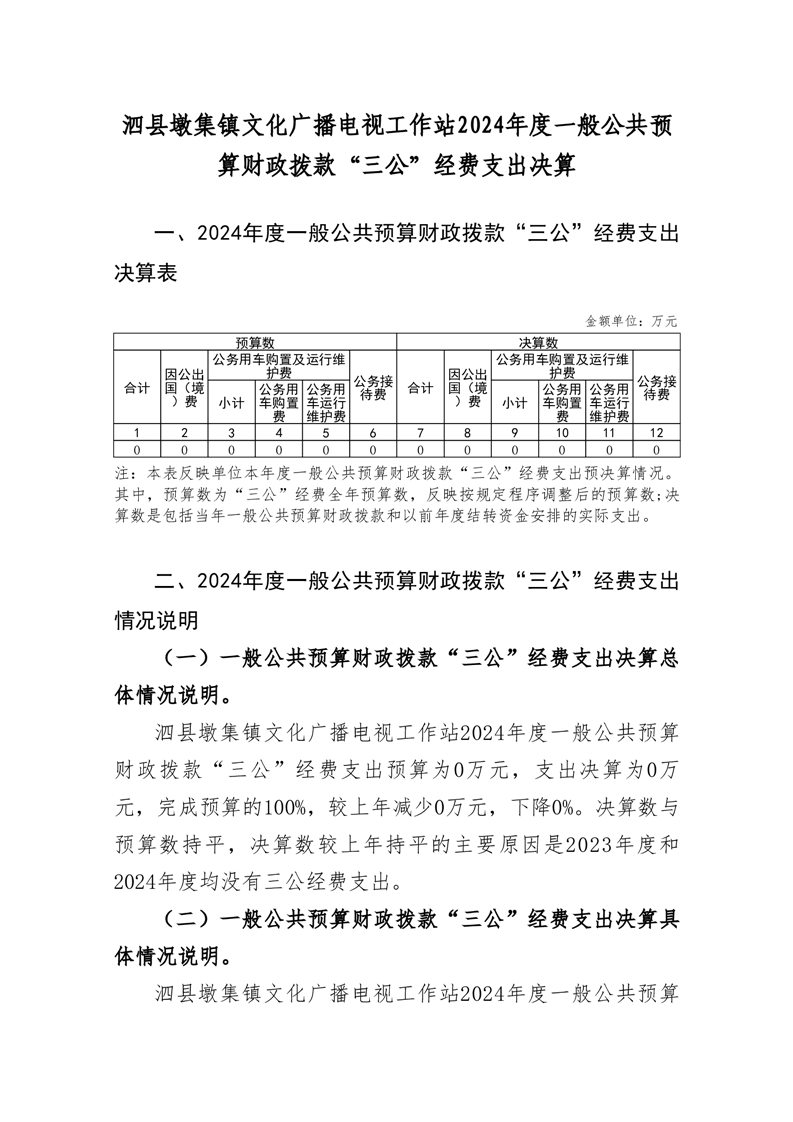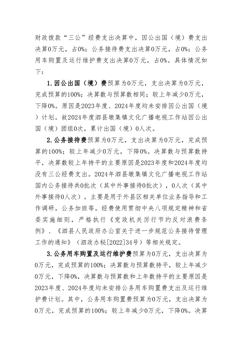 泗县墩集镇文化广播电视工作站2024年度单位一般公共预算财政拨款“三公”经费决算情况说明