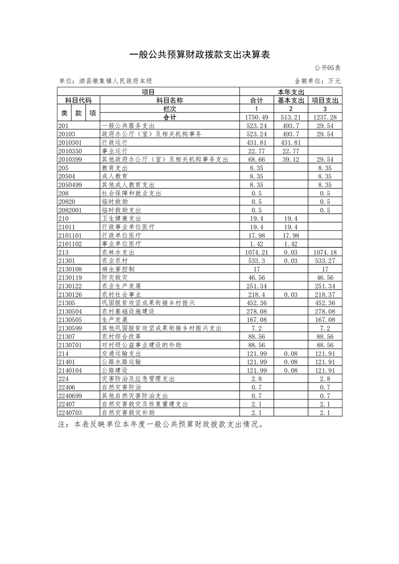 泗县墩集镇人民政府本级2024年度单位决算公开