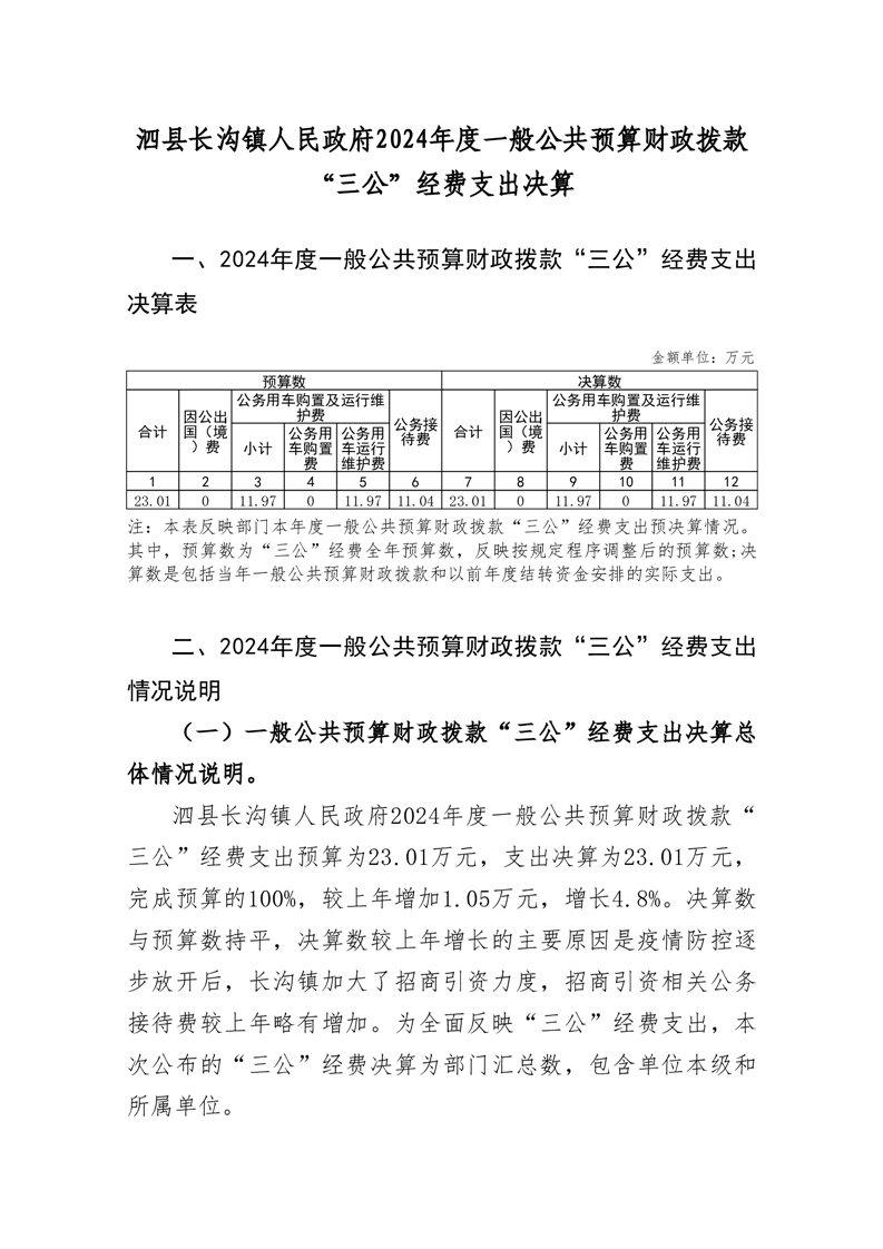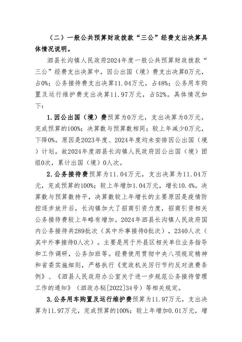 泗县长沟镇人民政府2024年度部门一般公共预算财政拨款“三公”经费决算情况说明