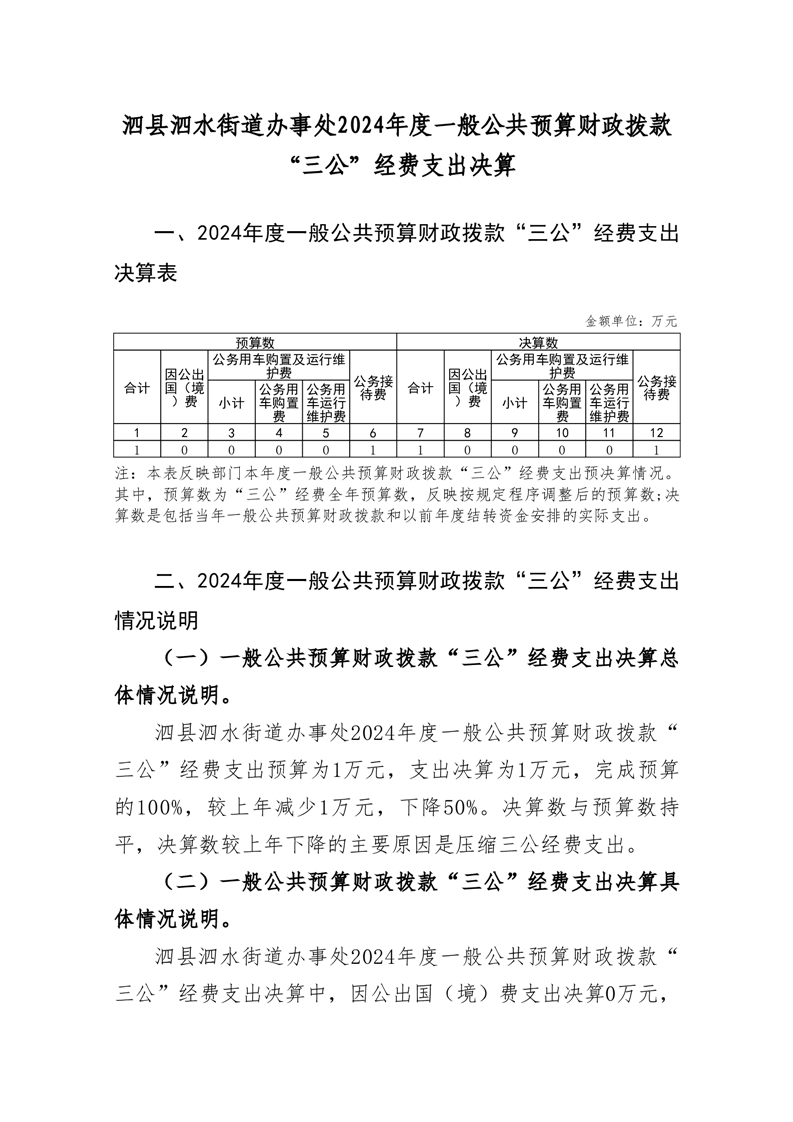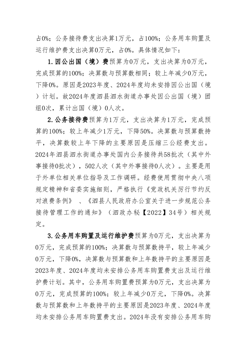 泗县泗水街道办事处2024年度一般公共预算财政拨款“三公”经费支出决算