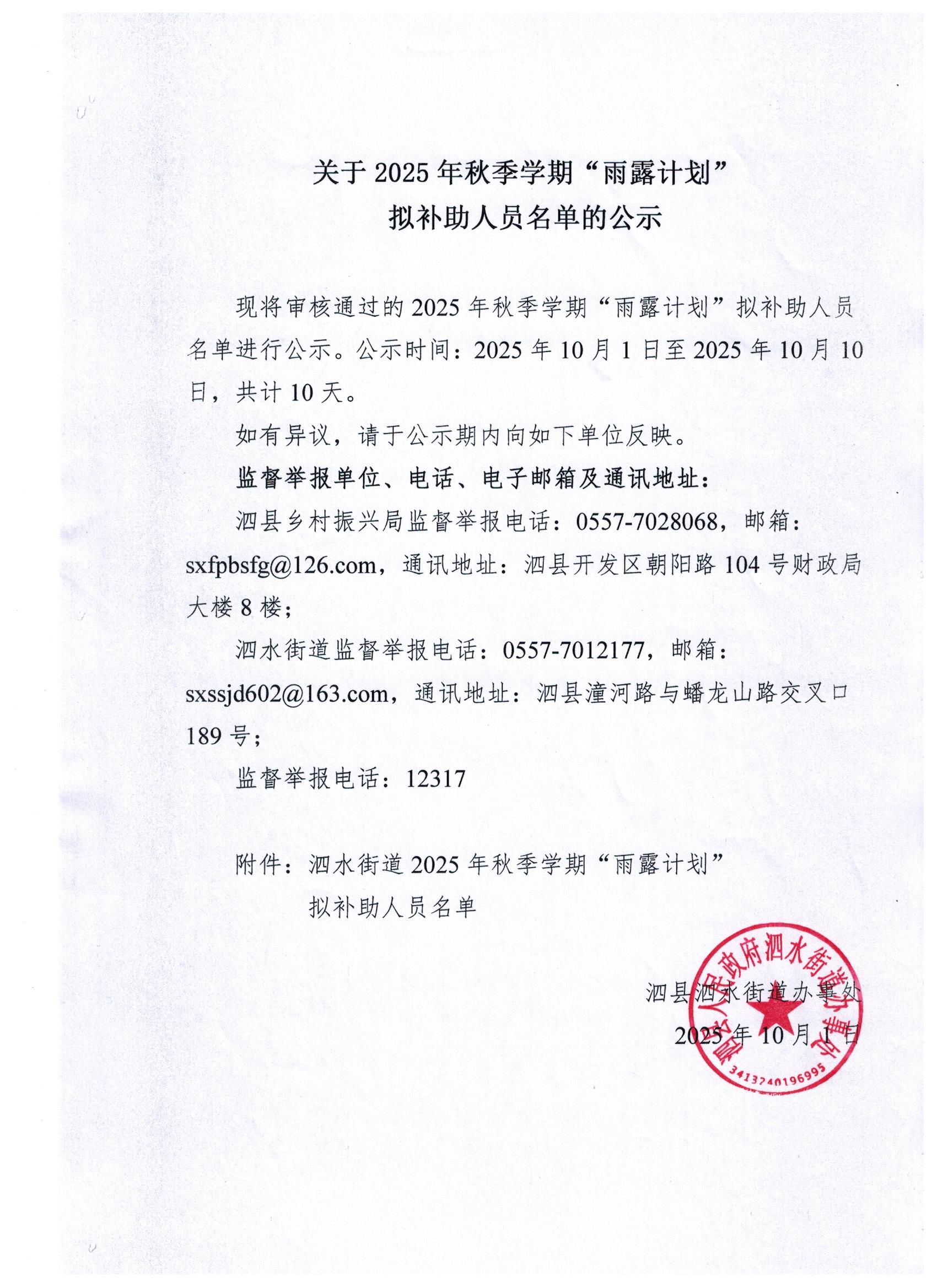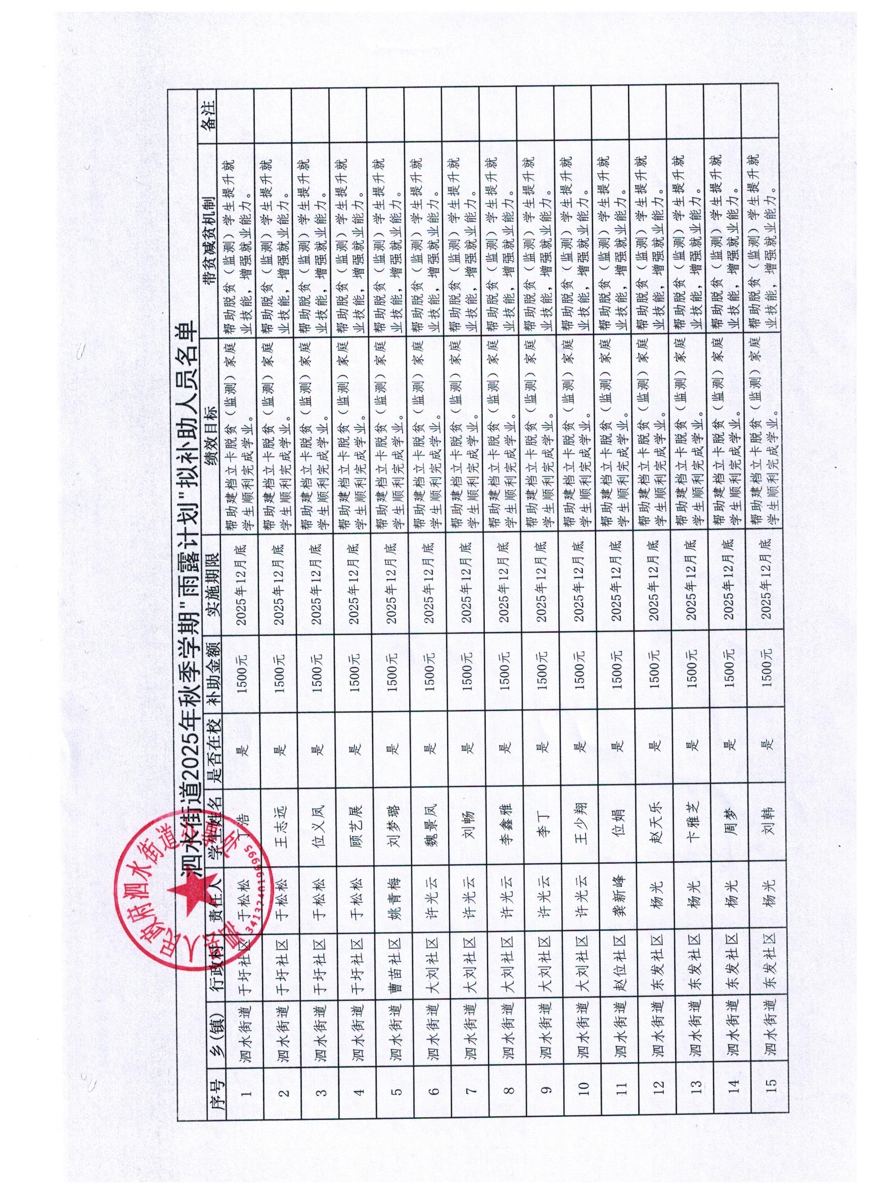 关于2025年秋季学期“雨露计划”拟补助人员名单的公示