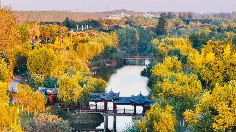 初冬的安徽泗县,仿佛打翻了北方专属的调色盘。清树湾公园里,银杏道已铺就一条碎金地毯。飞虹广场上,成行的栾树挂满了赭褐色的“小灯笼”,在湛蓝的天幕下摇响清爽的铃音。新濉河两岸的松柏则以不变的苍翠,与垂柳的淡黄丝绦相映成趣,稳稳托住这片斑斓。