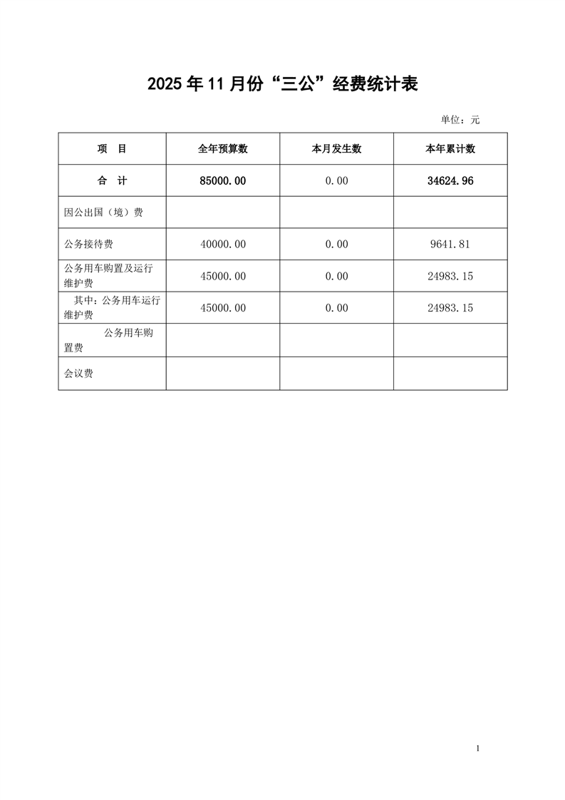 2025年11月份“三公”经费统计表