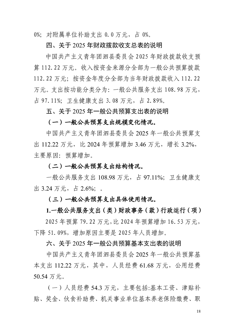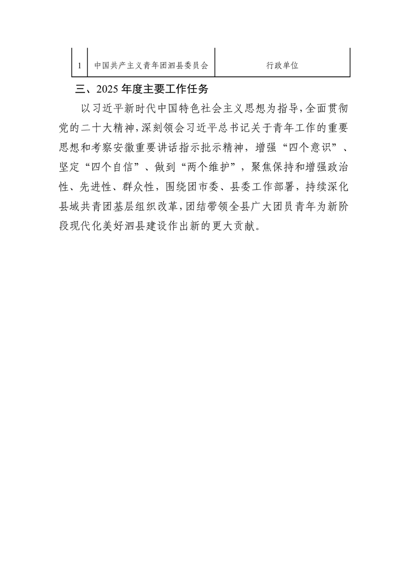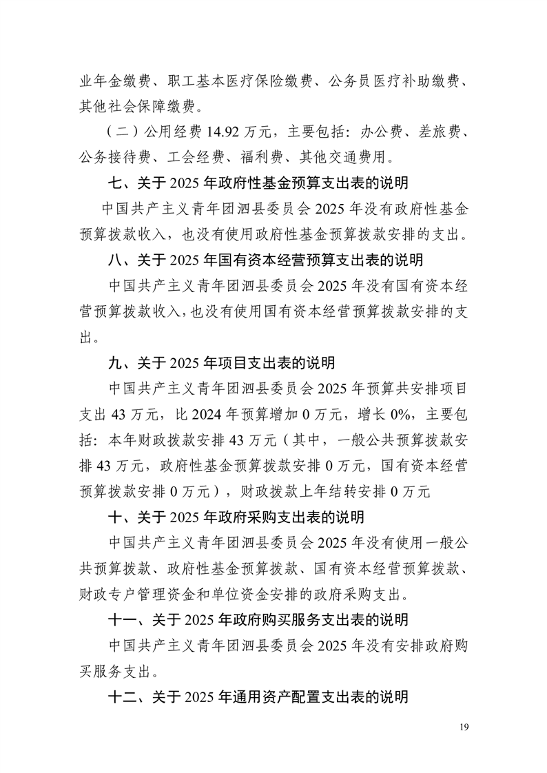 泗县中国共产主义青年团泗县委员会 2025年部门预算 |