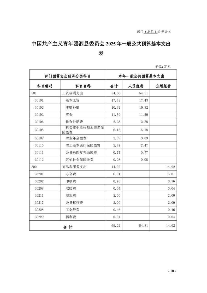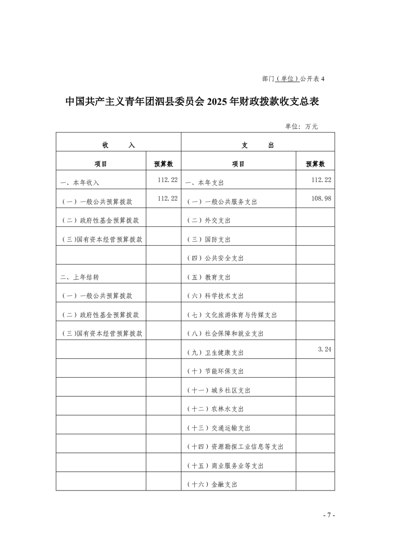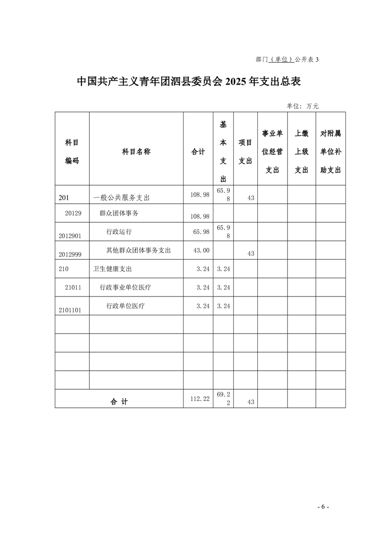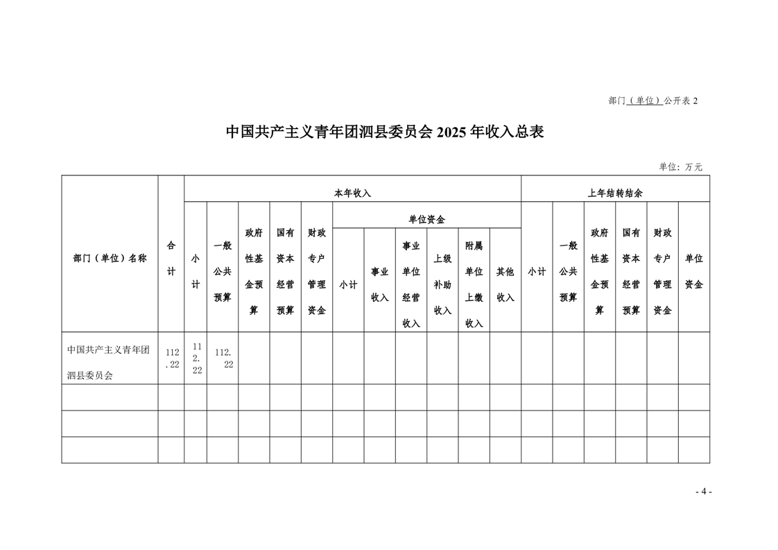 泗县中国共产主义青年团泗县委员会 2025年部门预算 |