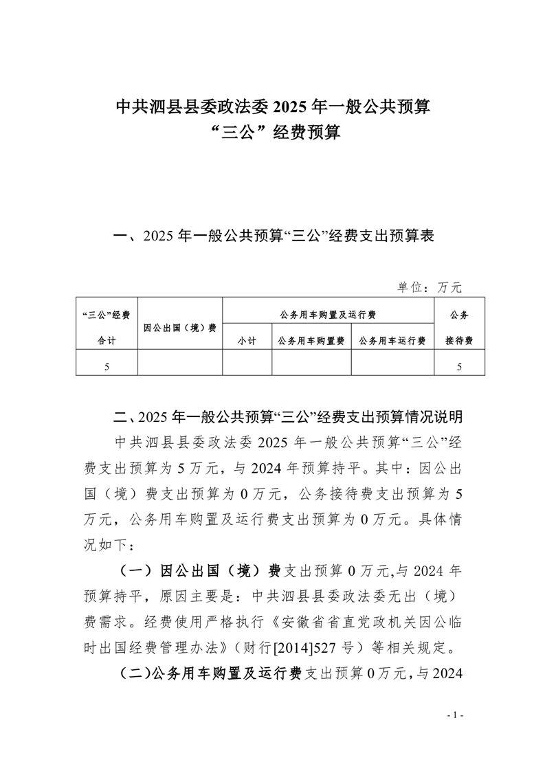 中共泗县县委政法委员会2024年度部门一般公共预算财政拨款“三公”经费决算情况说明 |