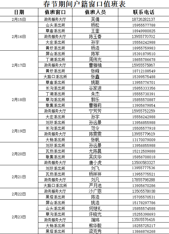春节假期也能办!泗县公安户籍窗口值班表请查收→