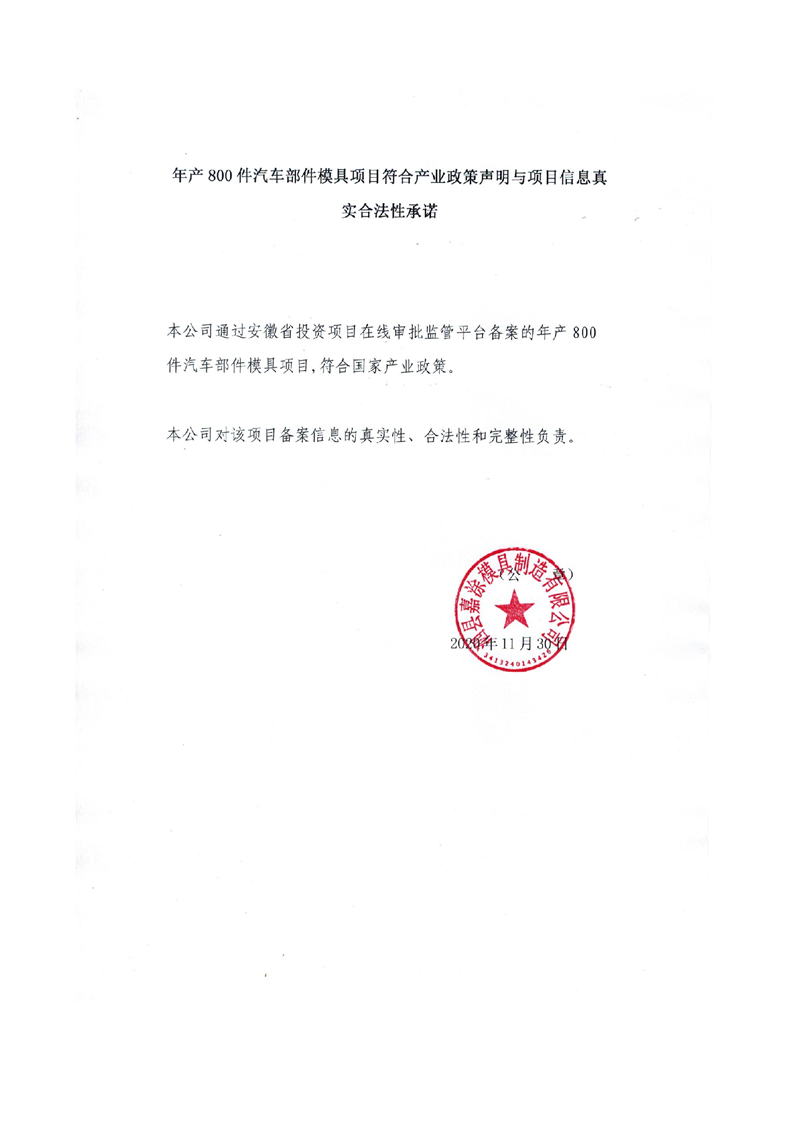 关于年产800件汽车部件模具项目备案表