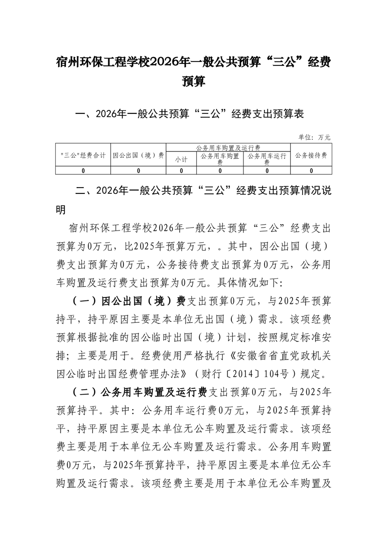 宿州环保工程学校2026年一般公共预算“三公”经费预算 |