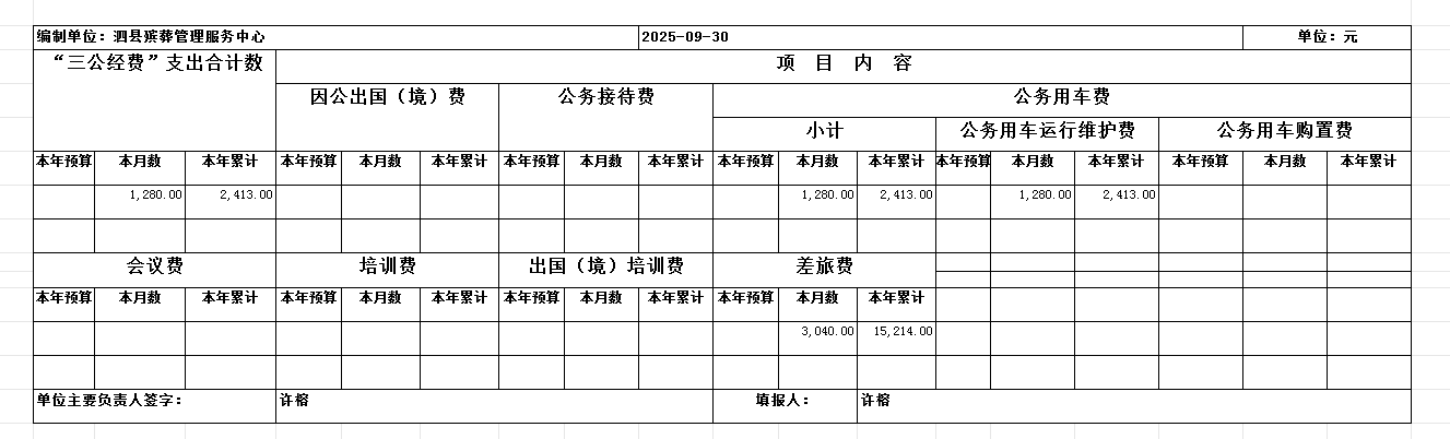 | 名称: | 泗县殡葬管理服务中心2025年9月“三公“经费和会议费支出情况统计表 |