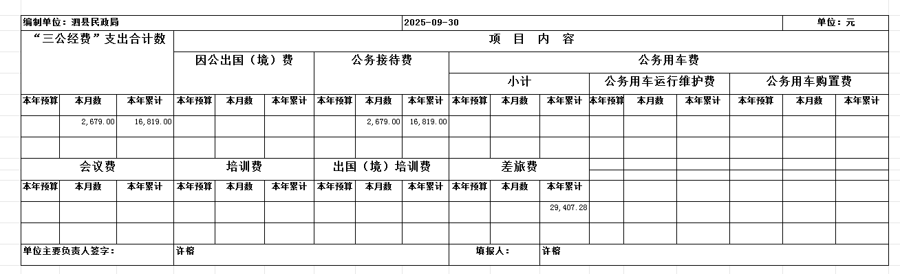 | 名称: | 2025年9月民政局“三公“经费和会议费支出情况统计表 |