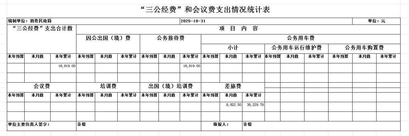 2025年10月民政局“三公“经费和会议费支出情况统计表 |