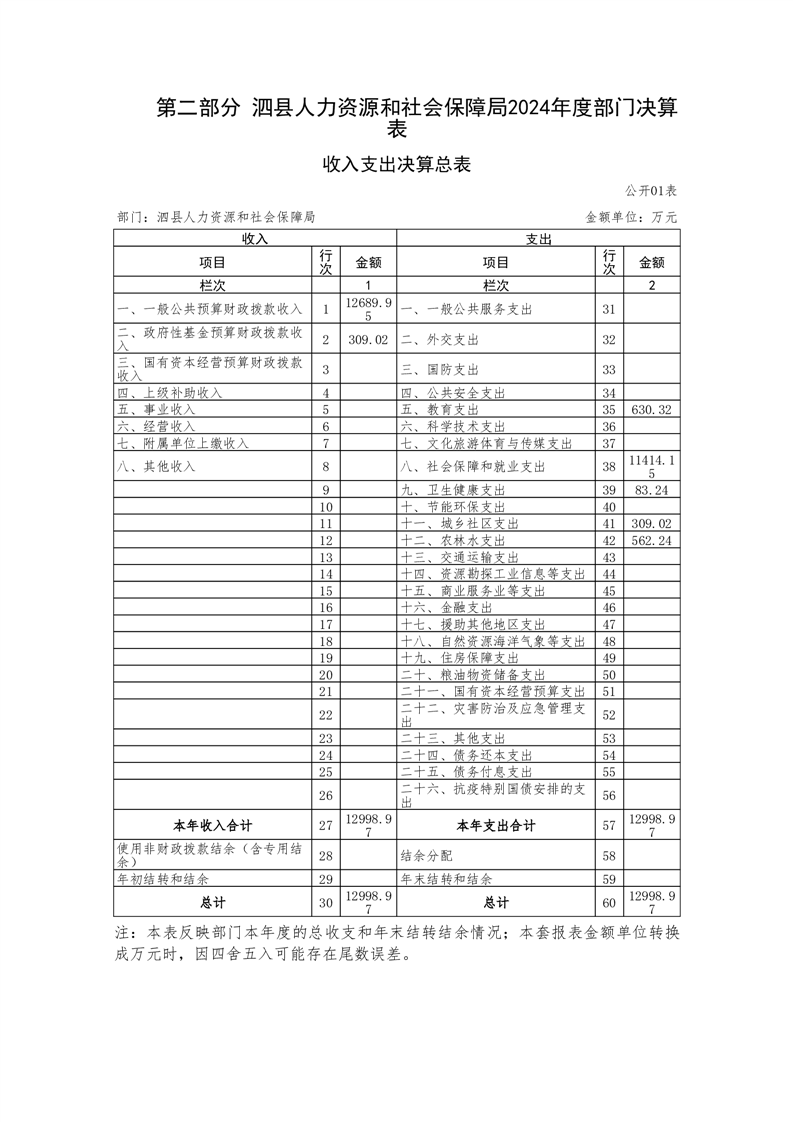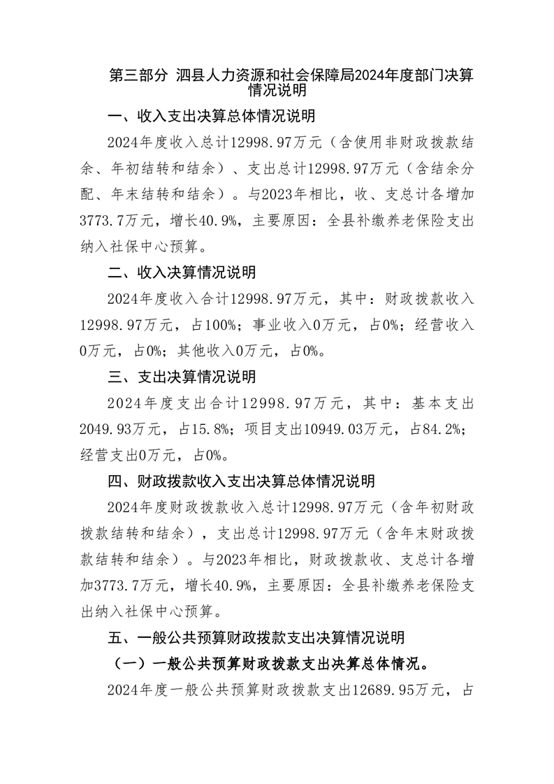 泗县人力资源和社会保障局2024年度部门决算公开 |