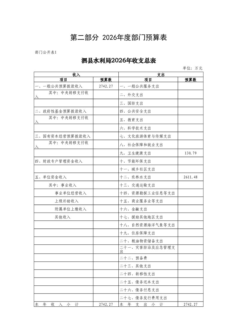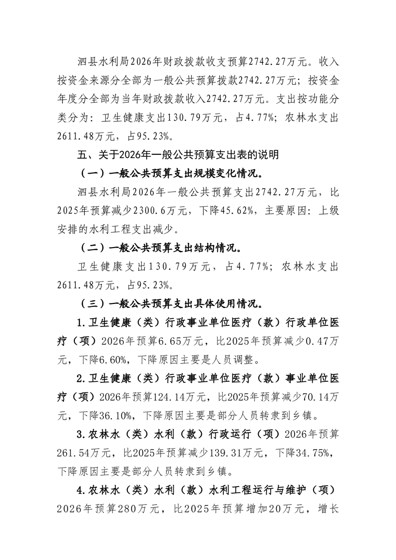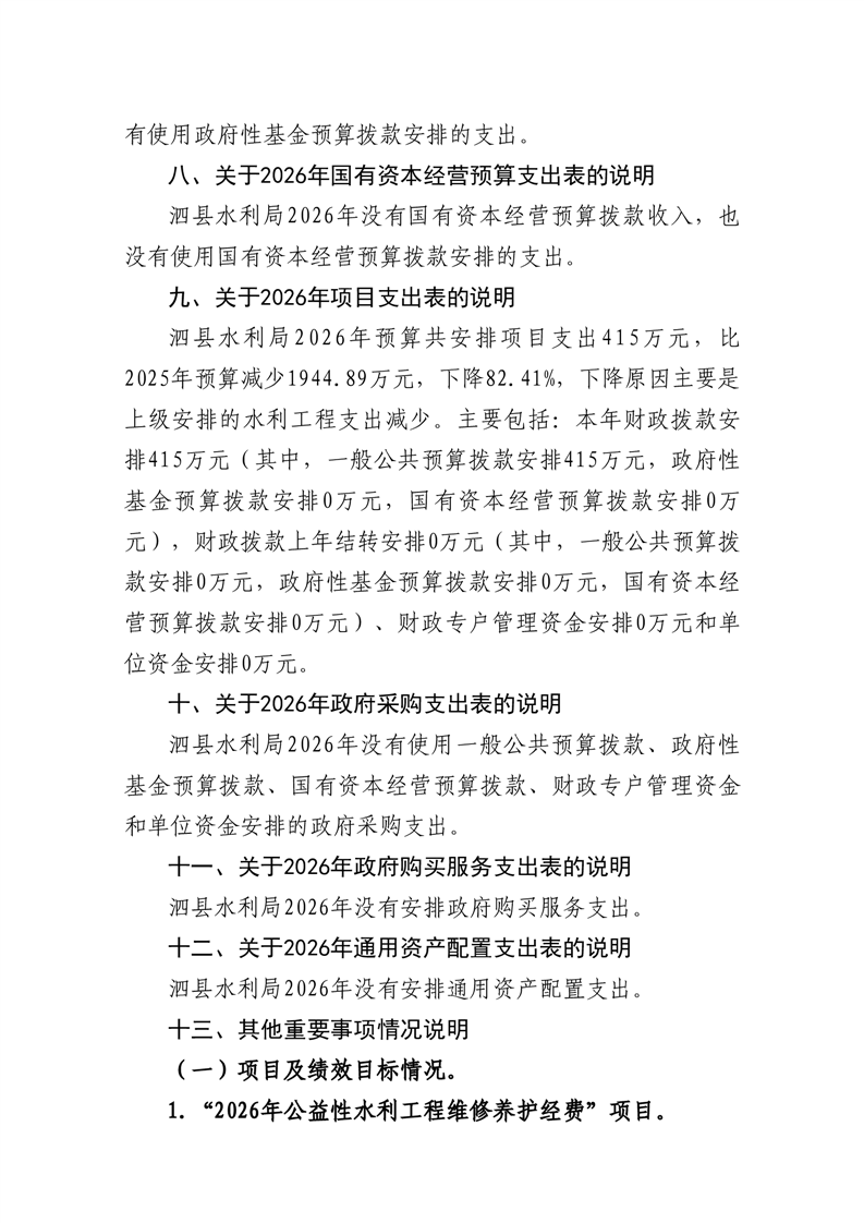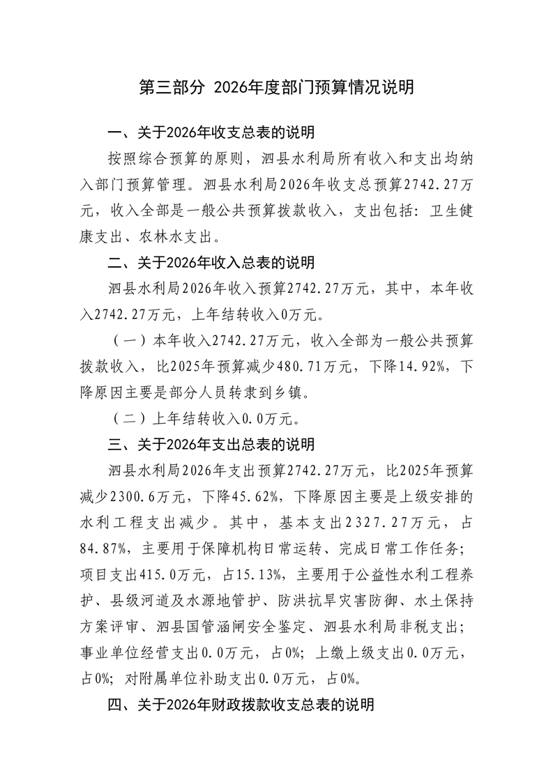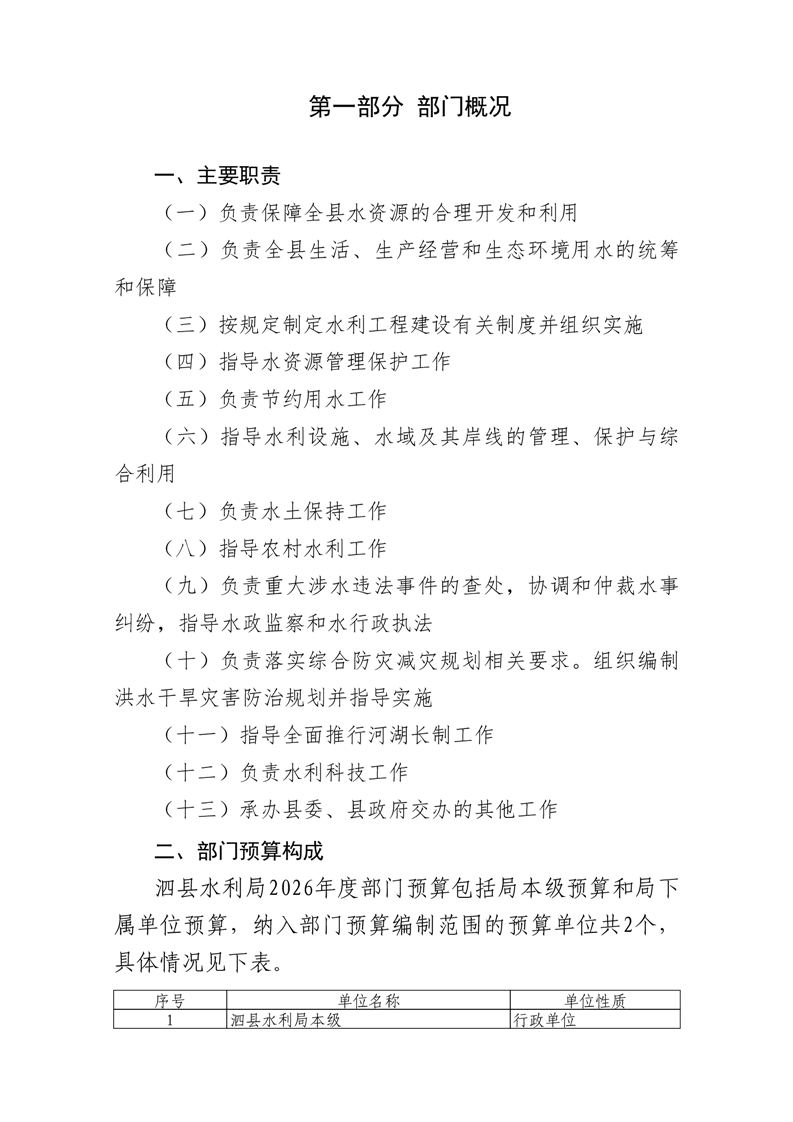 泗县水利局2026年度部门预算公开 |