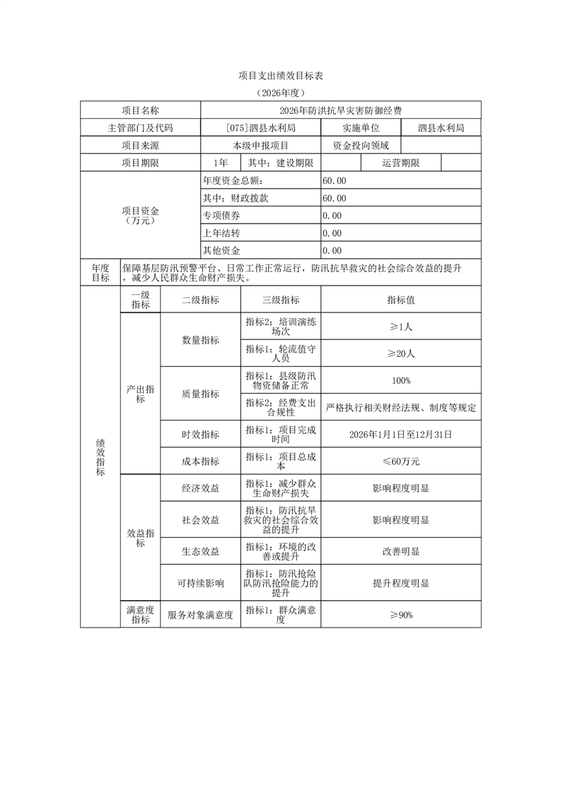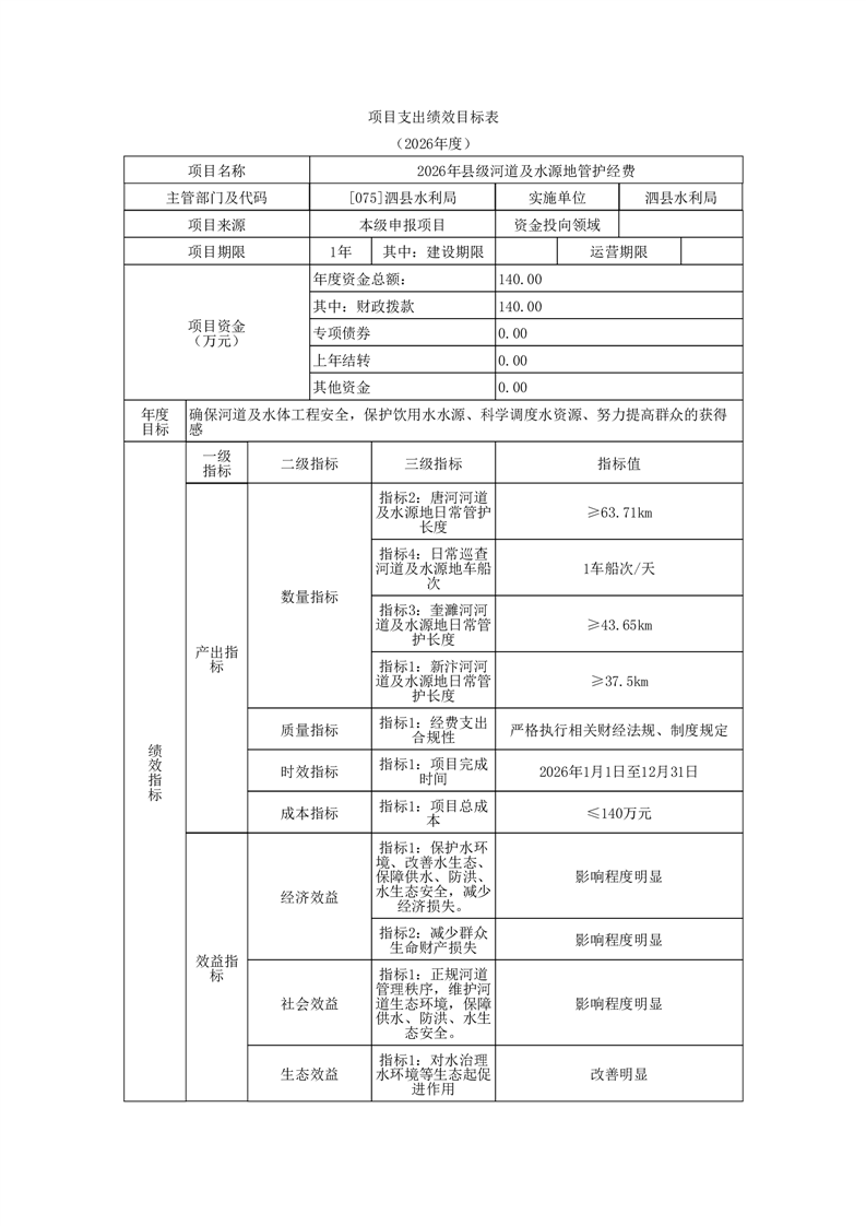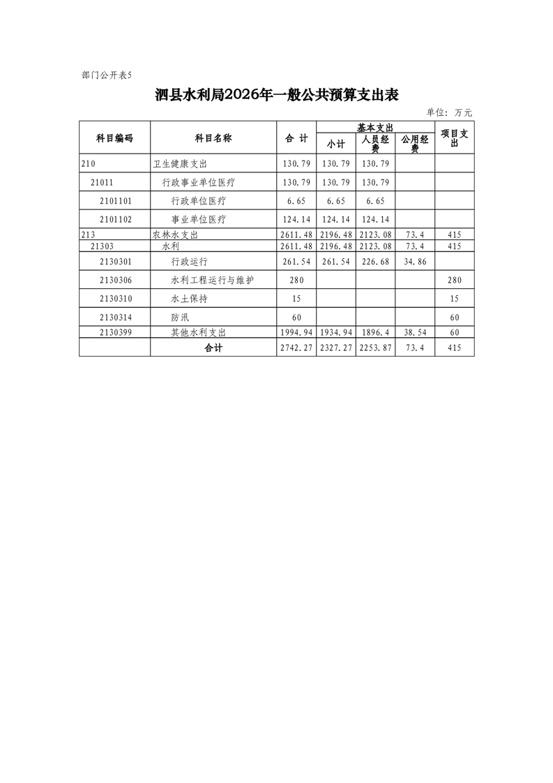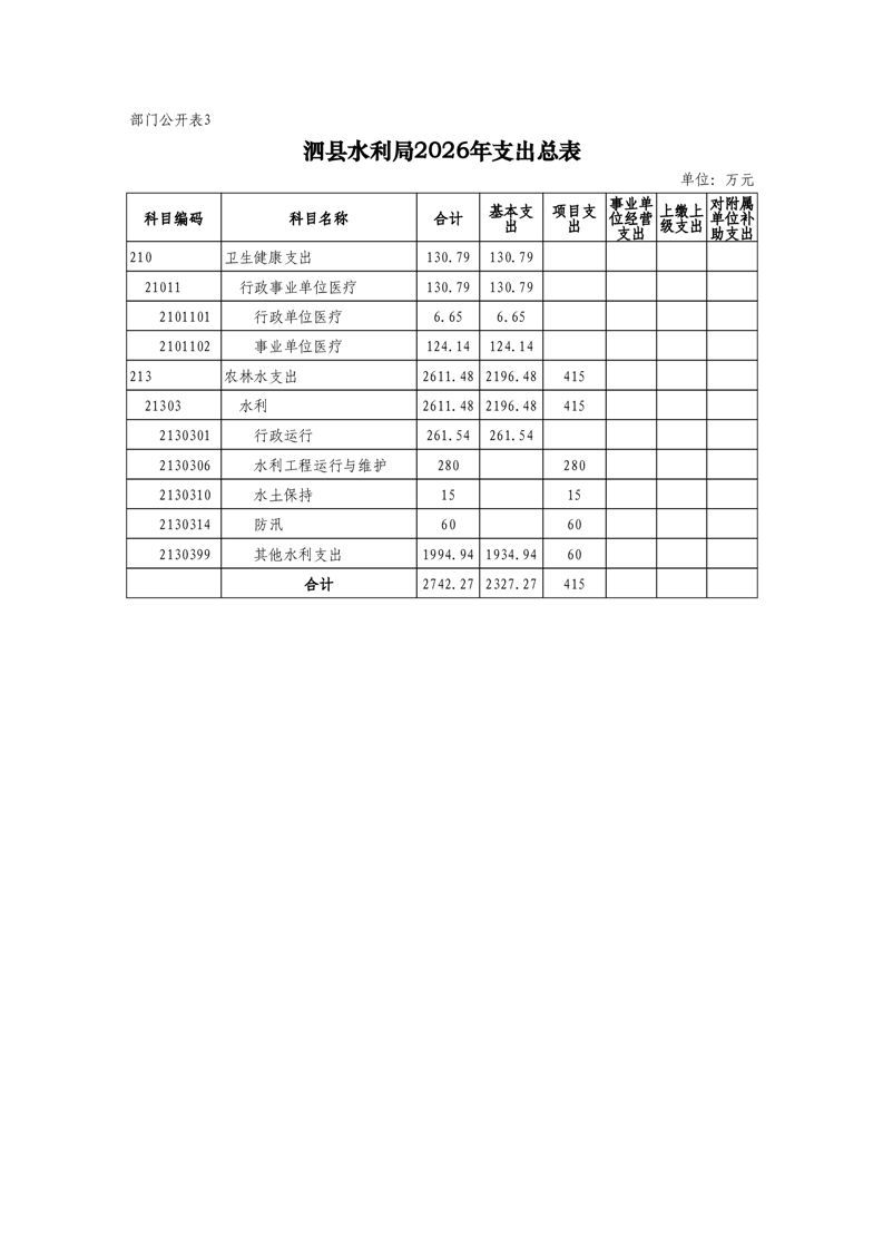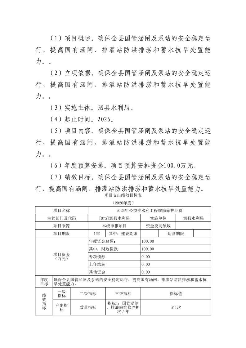 泗县水利局2026年度部门预算公开 |