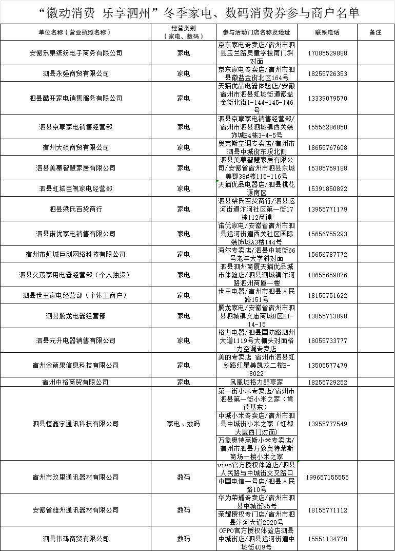 发放“徽动消费乐享泗州”冬季家电、数码消费券活动的公告