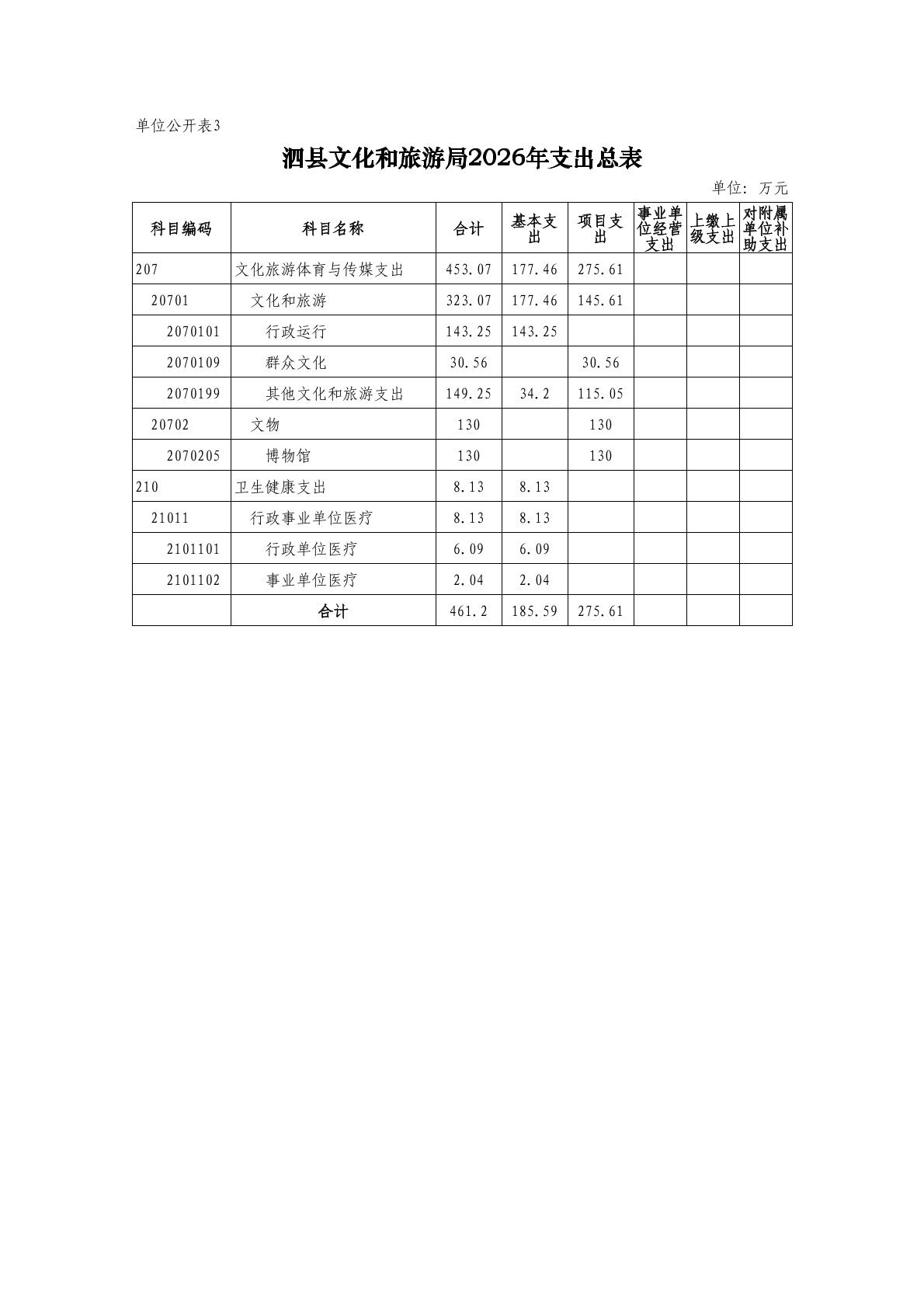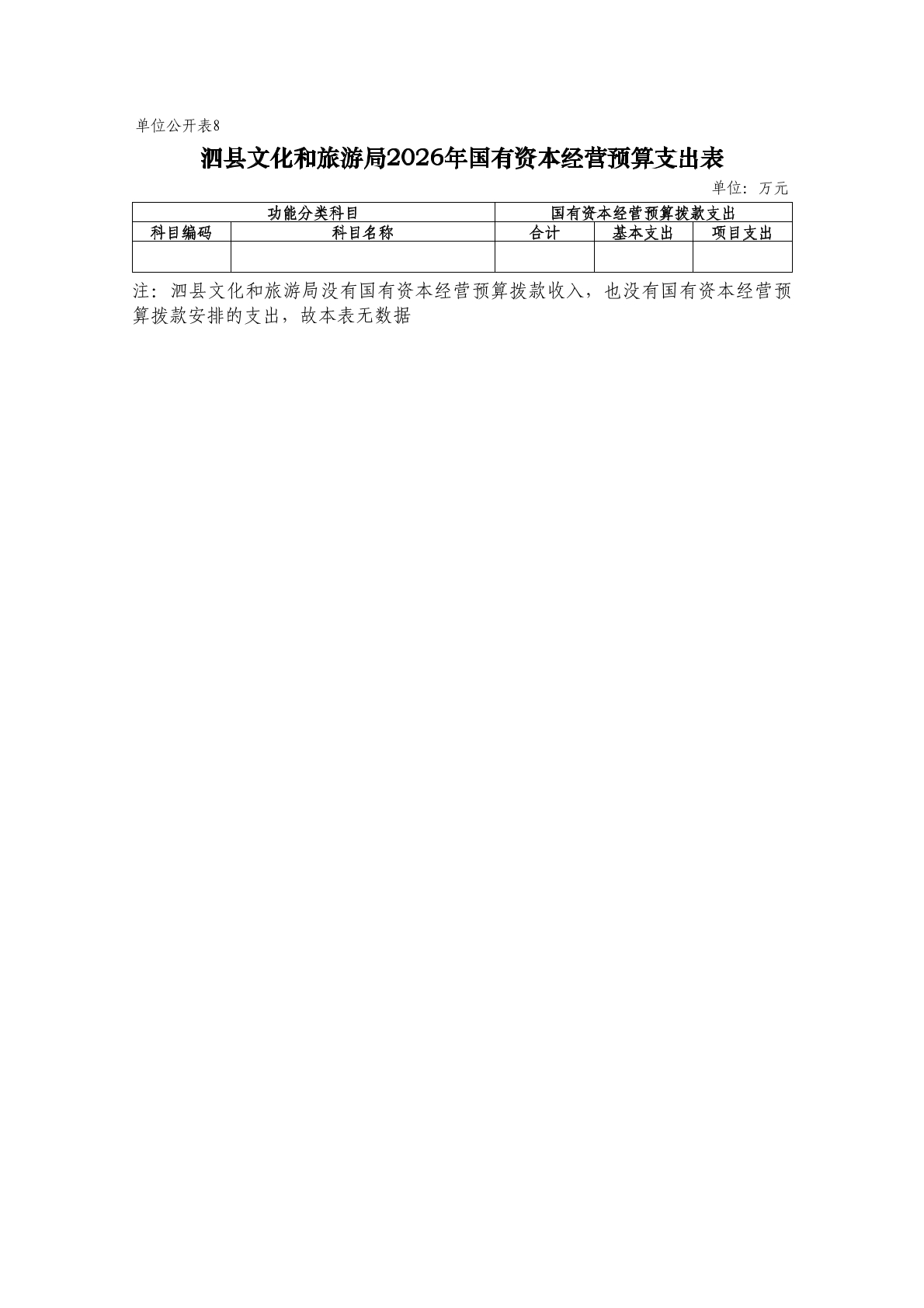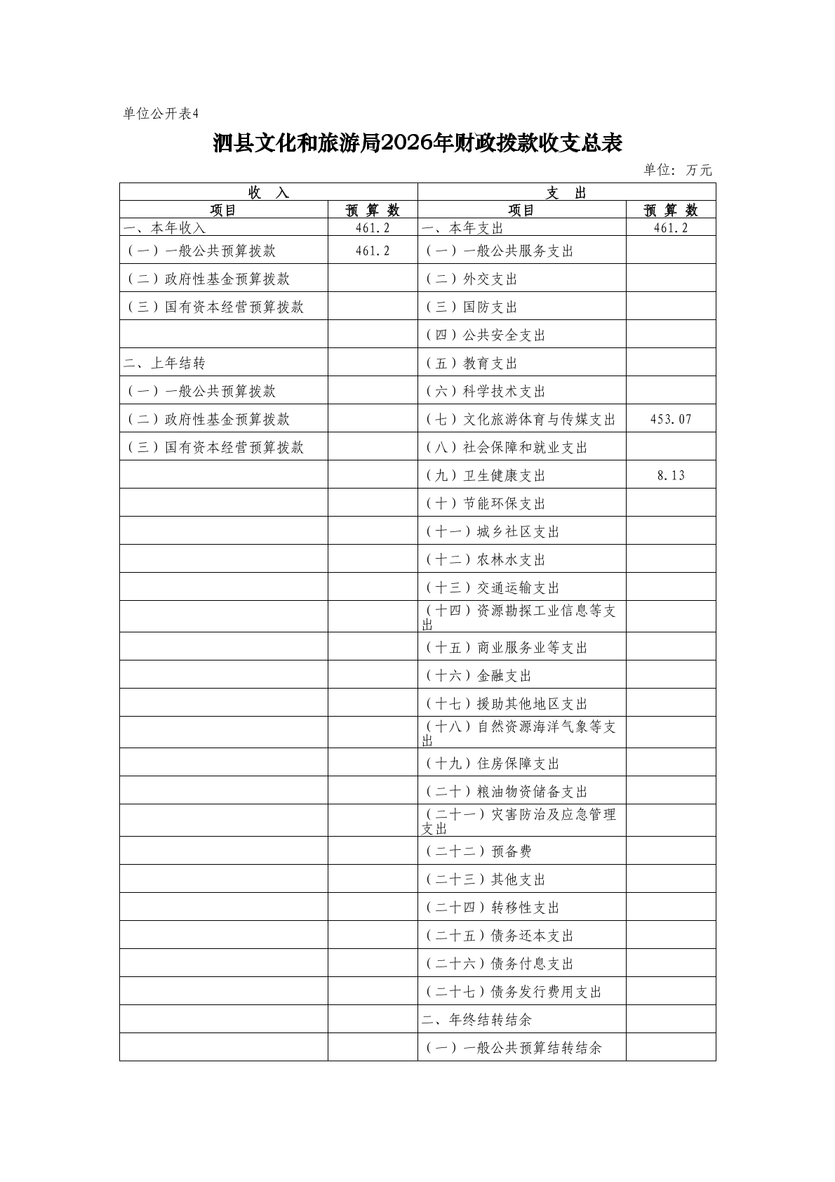 泗县文化和旅游局2026年度单位预算公开