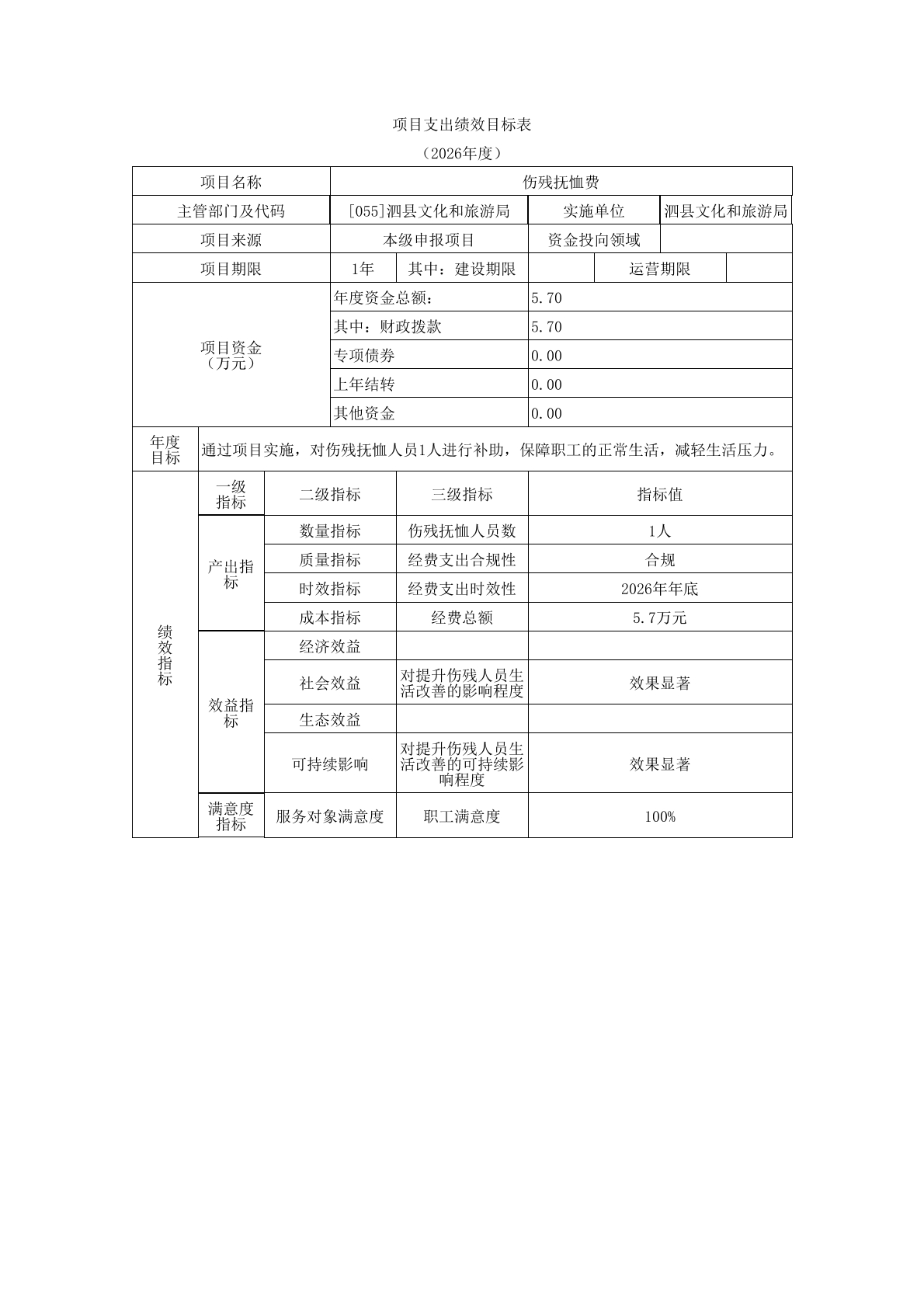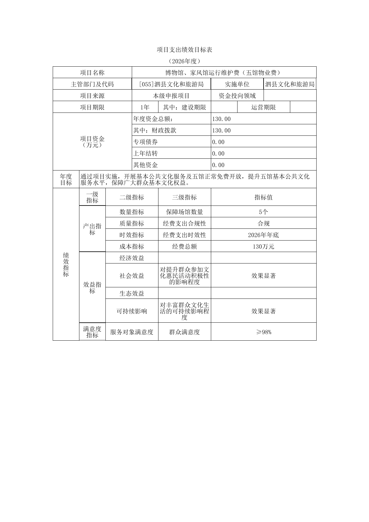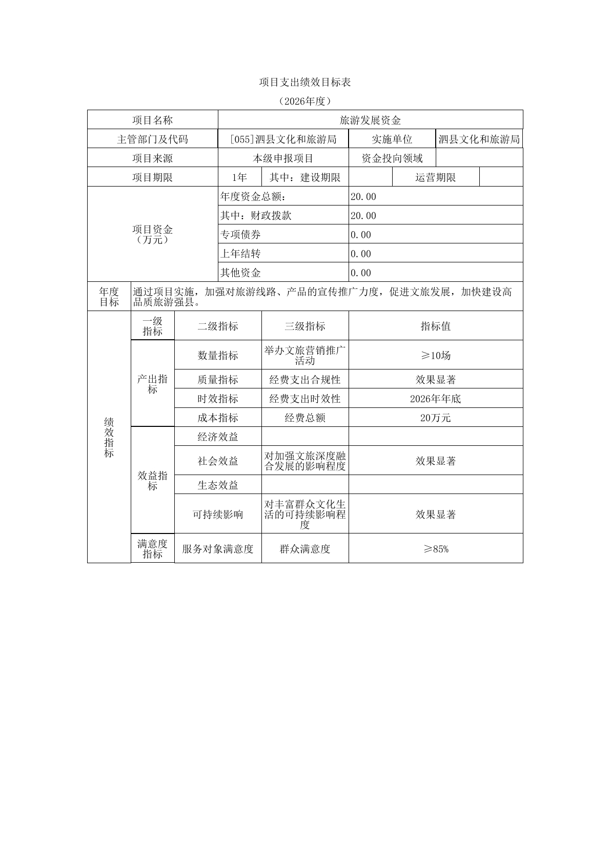 泗县文化和旅游局2026年度单位预算公开