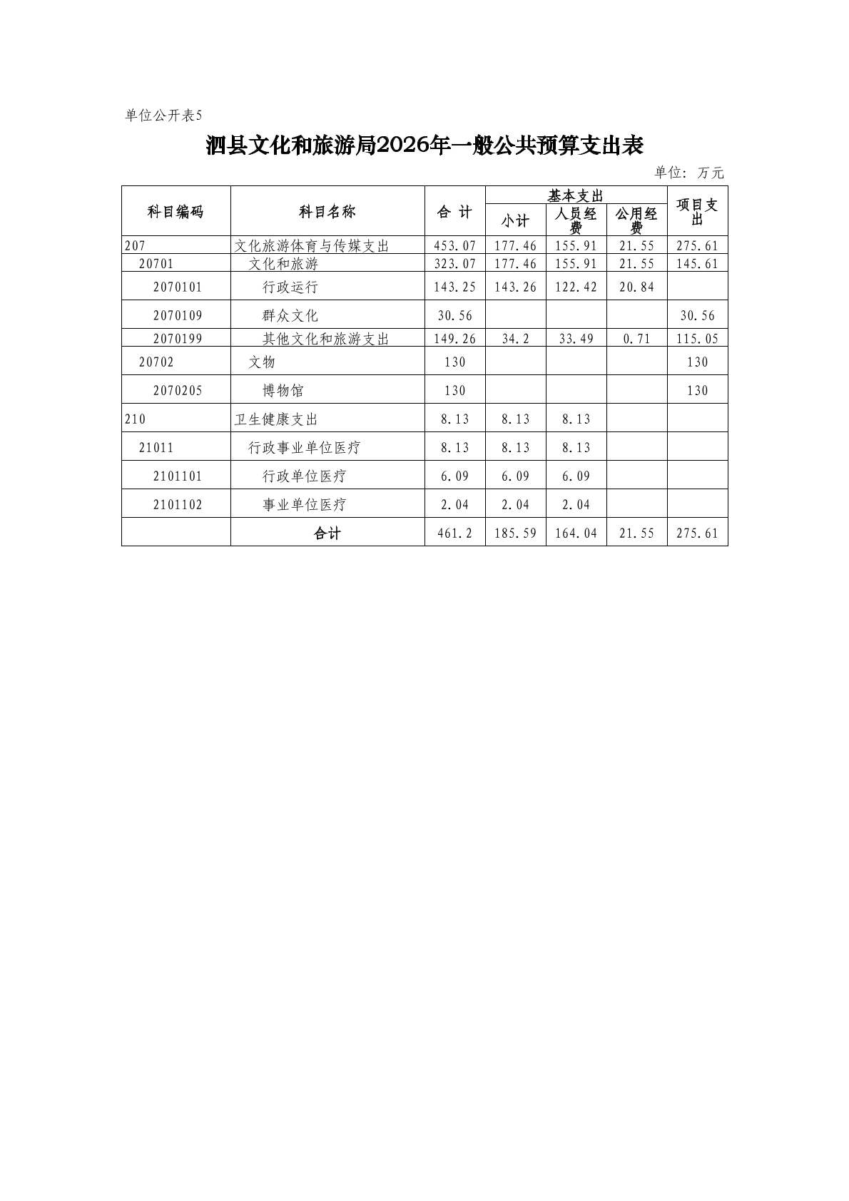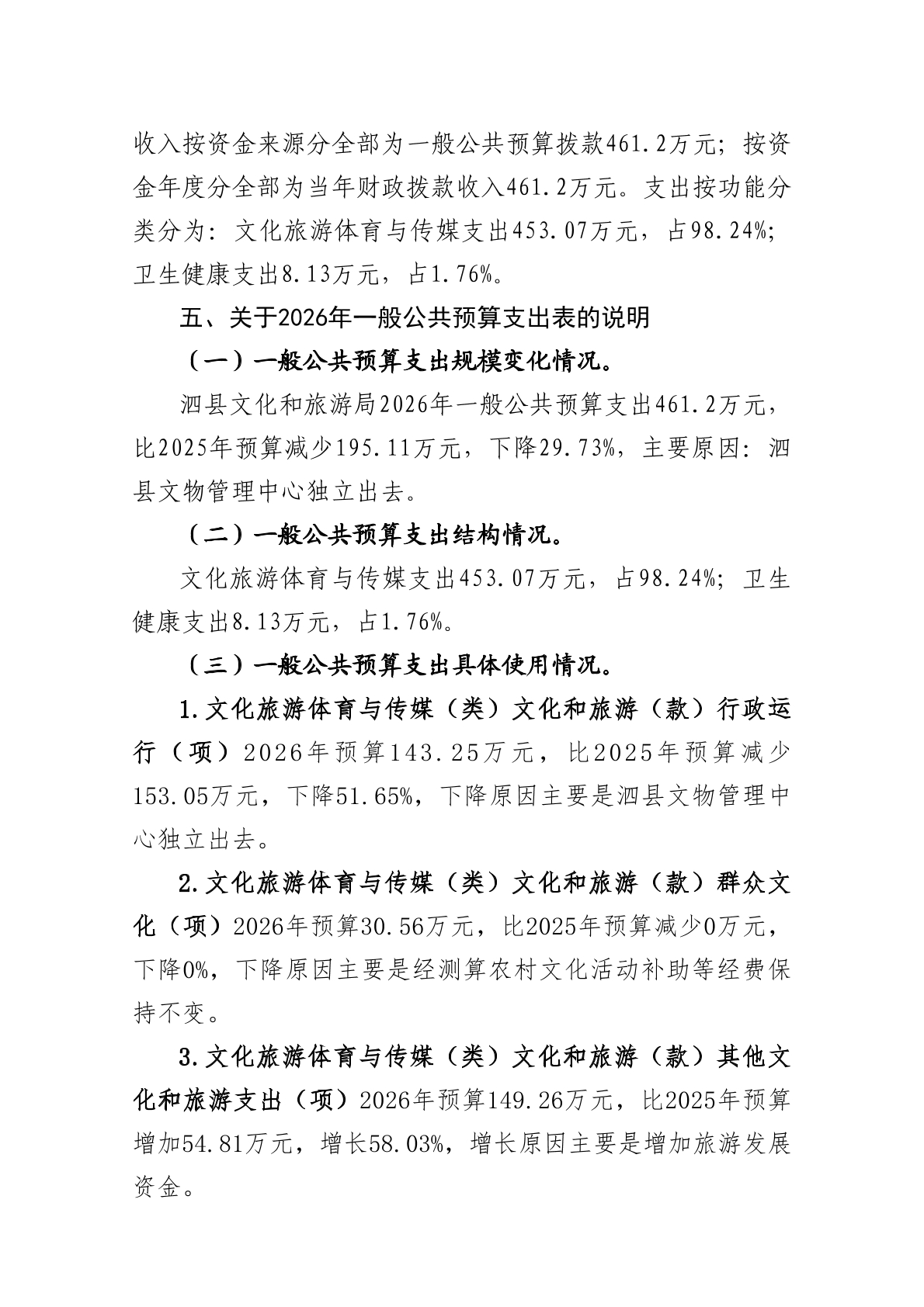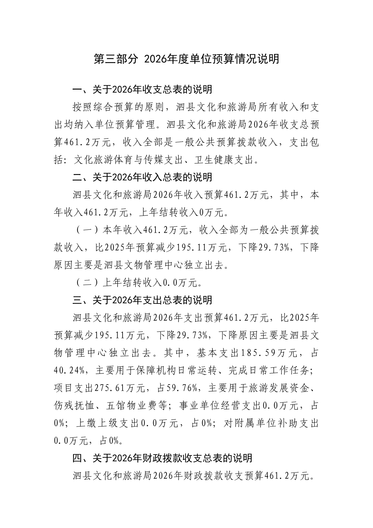 泗县文化和旅游局2026年度单位预算公开 |