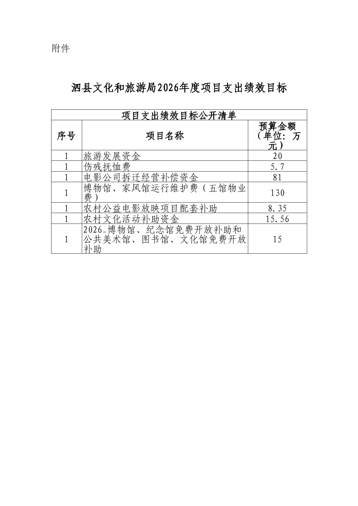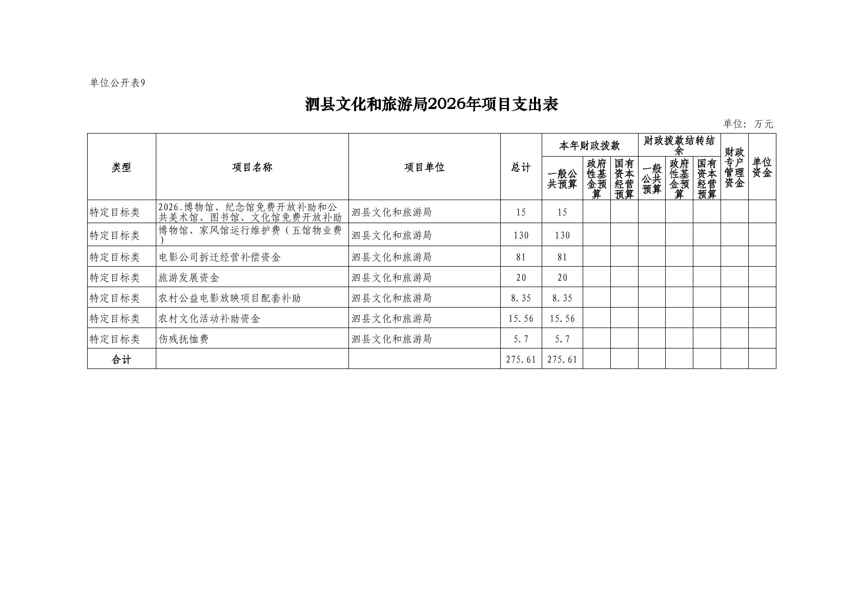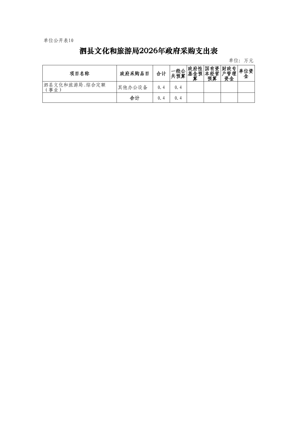 泗县文化和旅游局2026年度单位预算公开 |