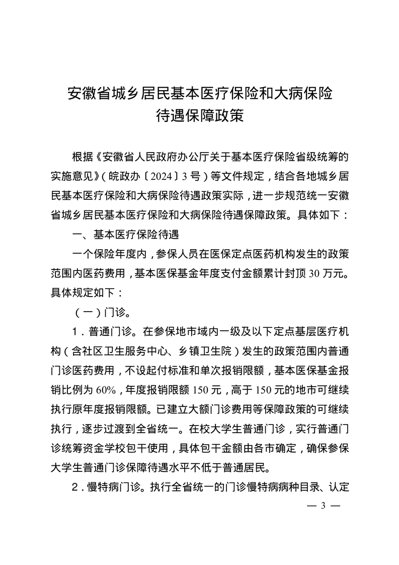 转发《安徽省城乡居民基本医疗保险和大病保险待遇保障政策》 |
